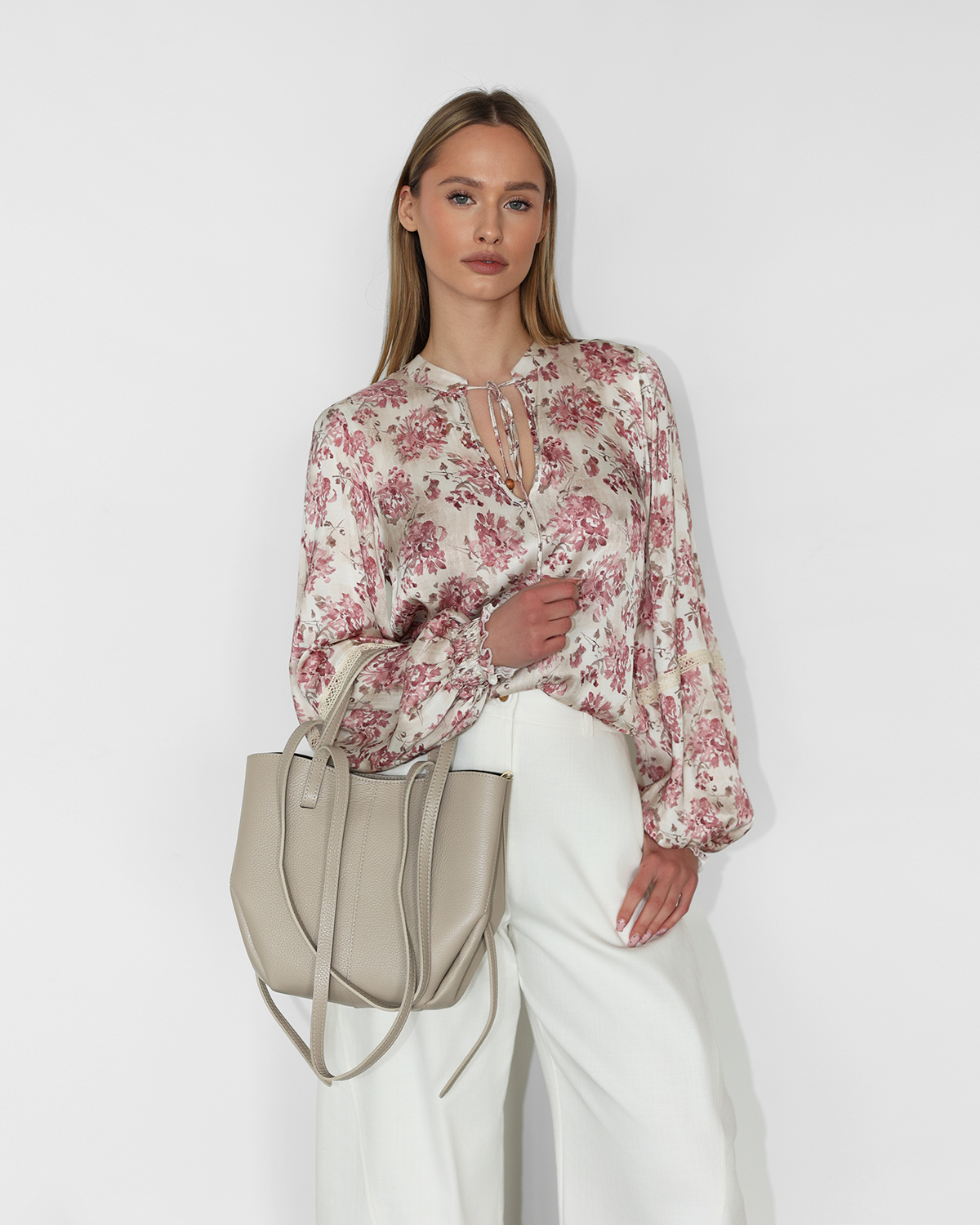 Beżowa duża torebka damska skórzana