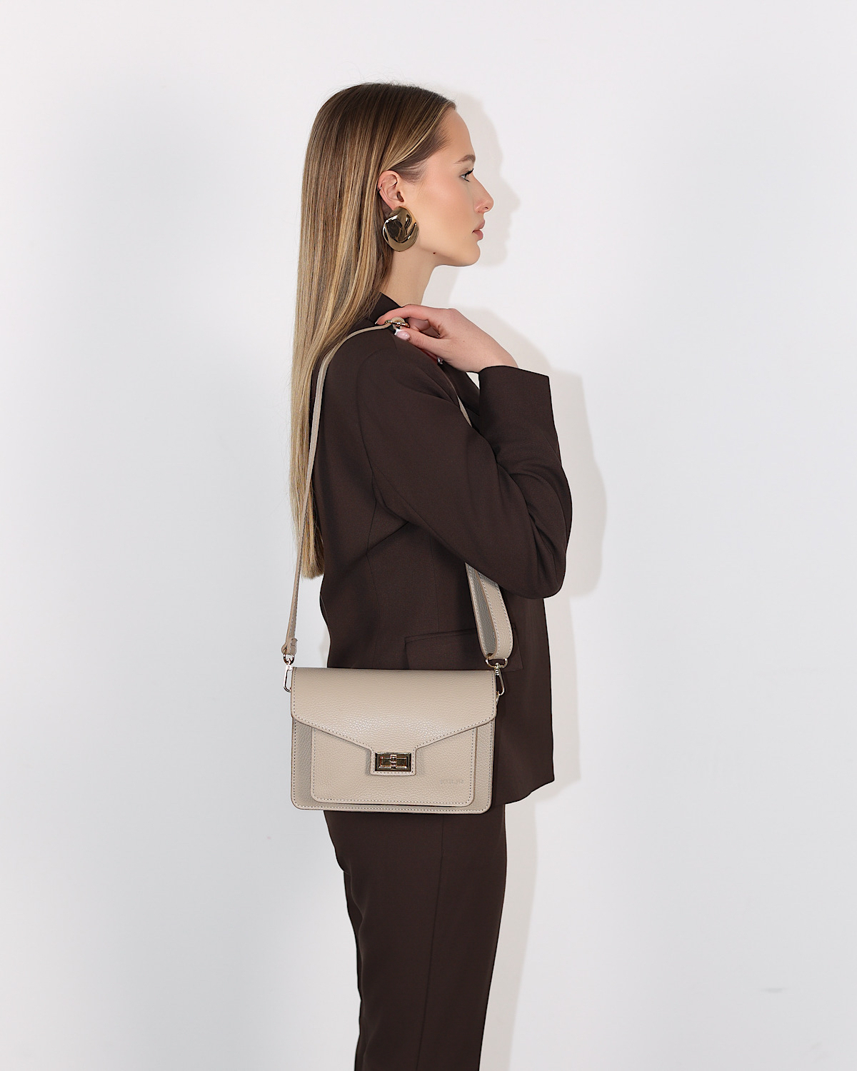 Beżowa mała torebka damska skórzana na ramię