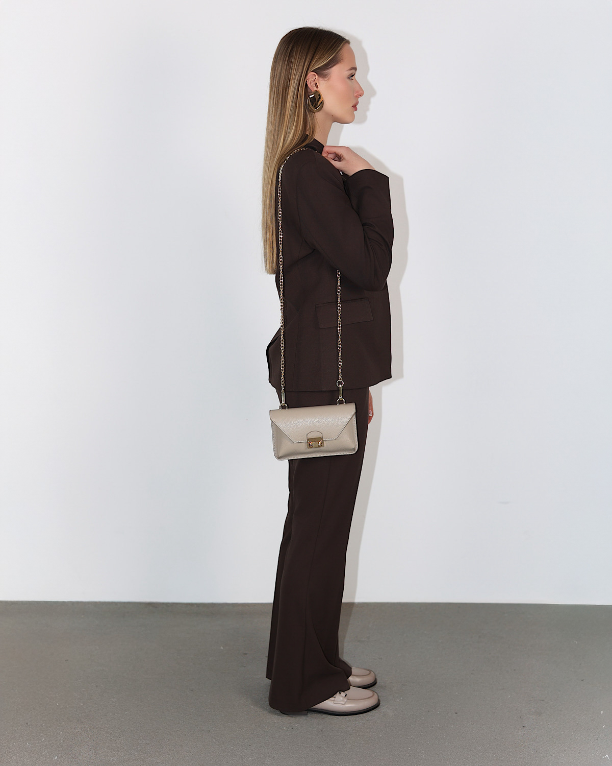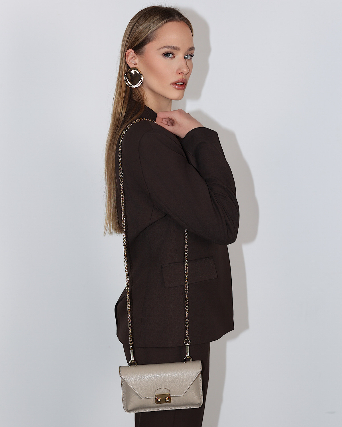 Beżowa mała torebka damska ze skóry licowej z łańcuszkiem