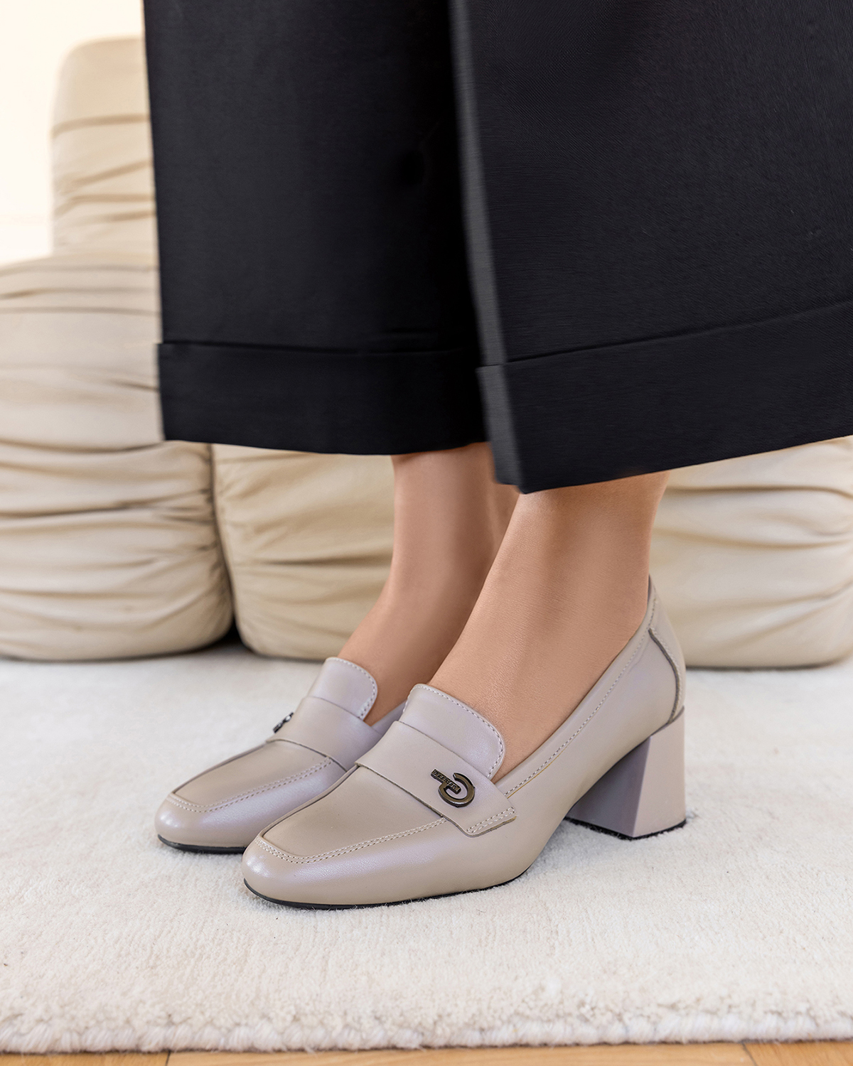 Beżowe mokasyny damskie skórzane na wysokim obcasie 105-91181-BEŻBeżowe mokasyny damskie skórzane na wysokim obcasie 105-91181-BEŻ