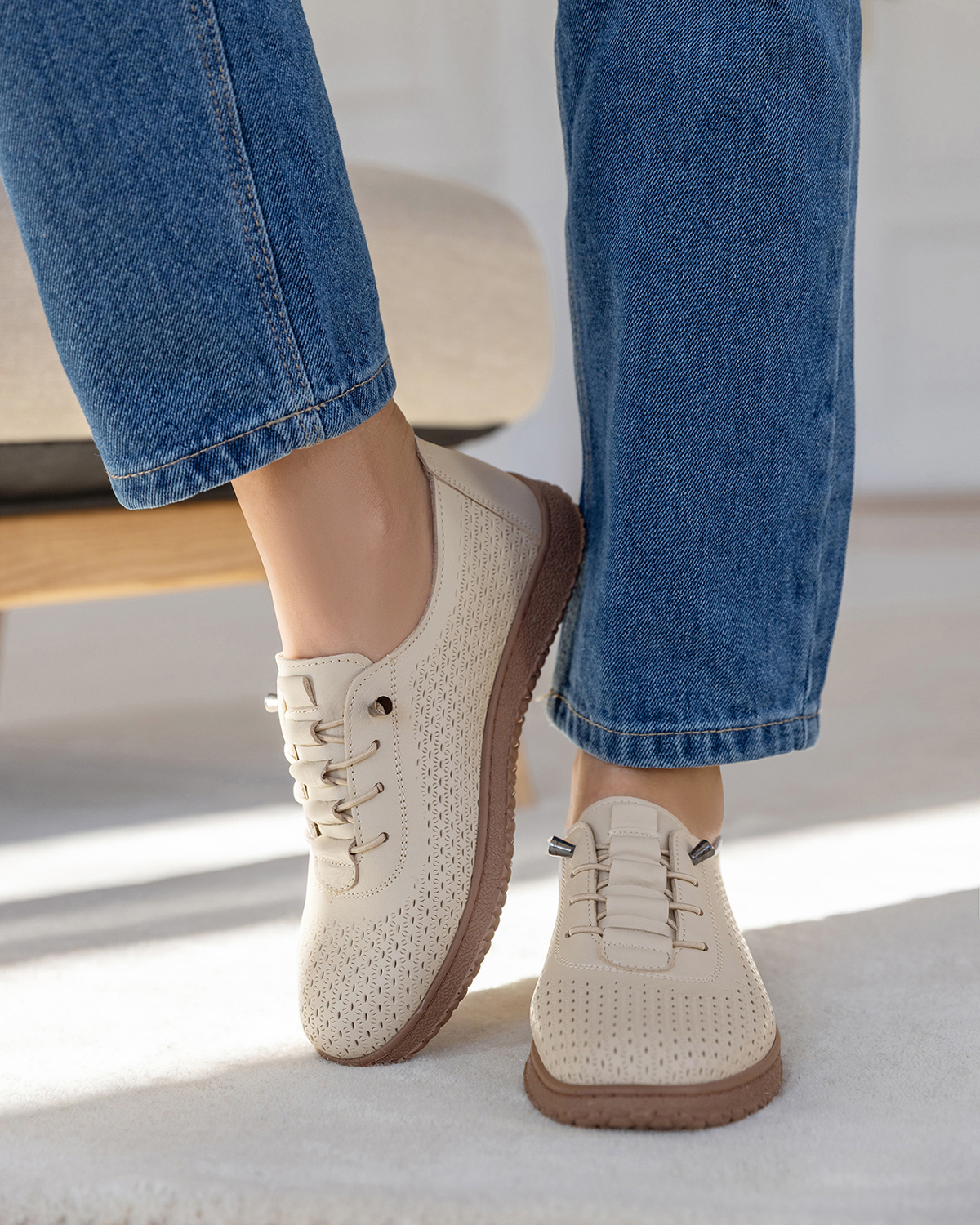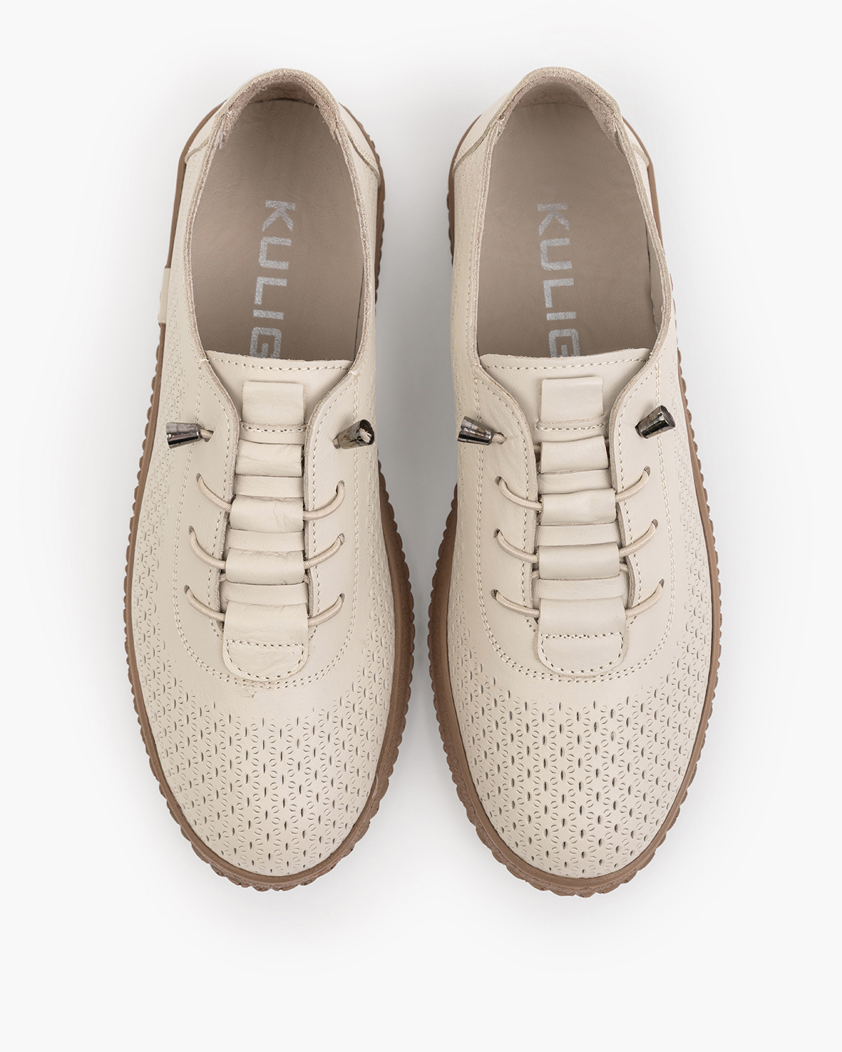 Beżowe półbuty damskie skórzane z perforacjami 165-27152-SZARYBeżowe półbuty damskie skórzane z perforacjami 165-27152-SZARY