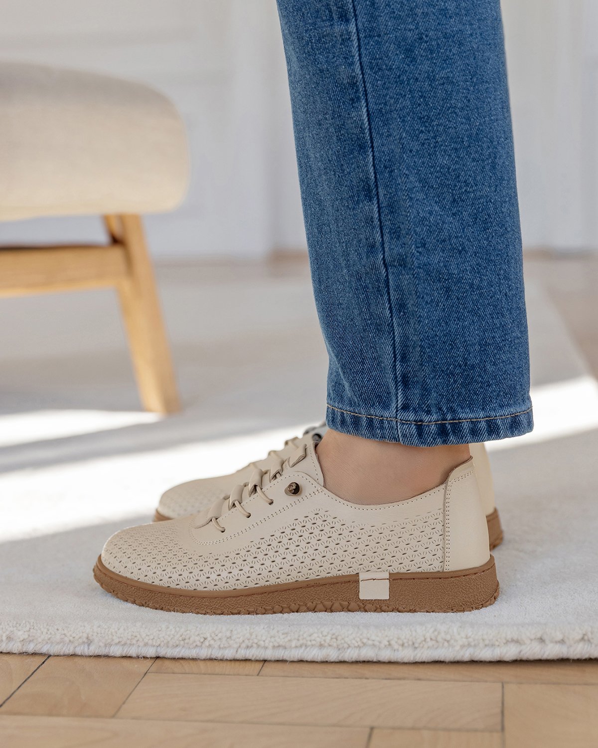 Beżowe trampki damskie skórzane z przeszywaną podeszwą