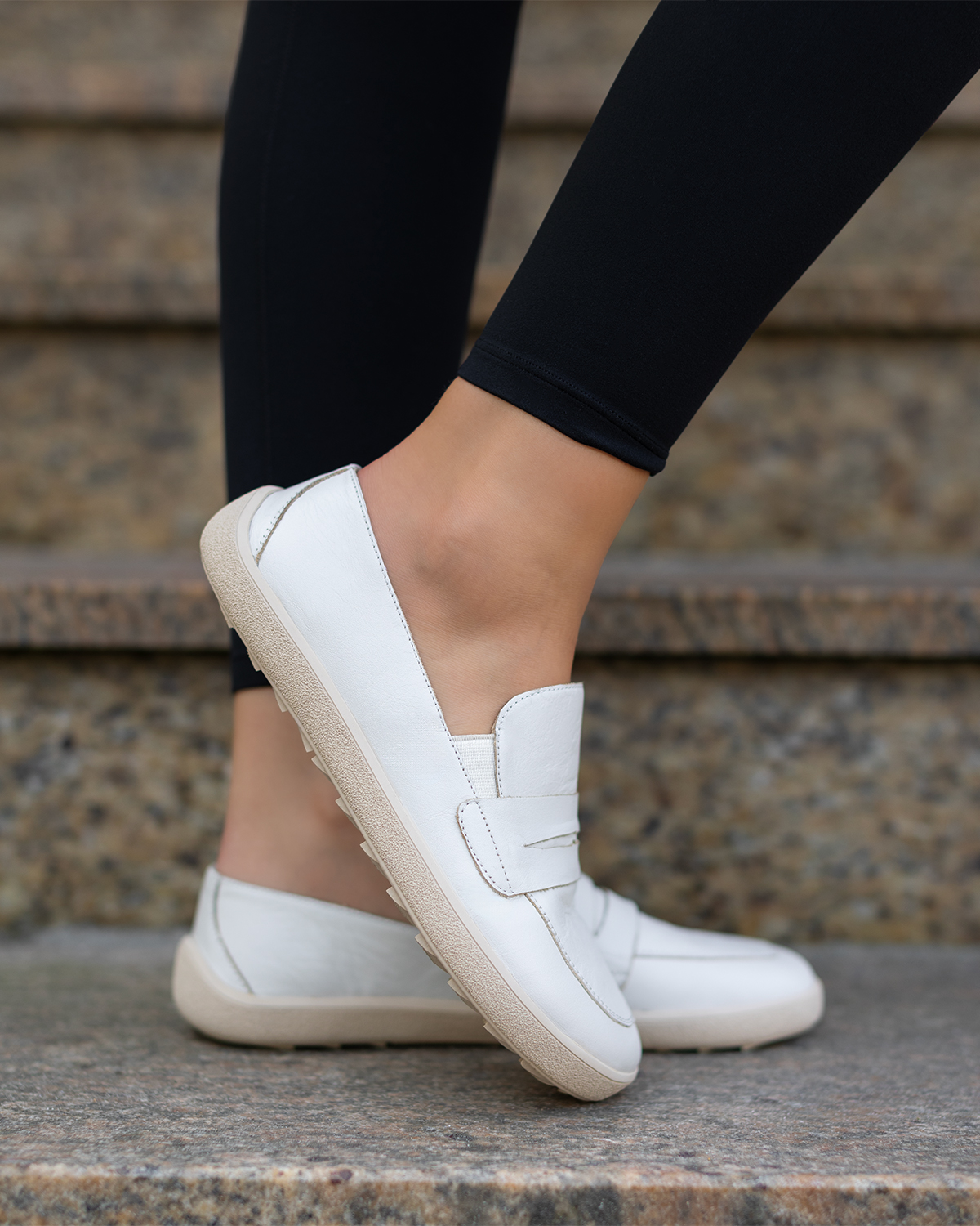 Prosty, wsuwany krój ułatwia zakładanie, a minimalistyczny design podkreśla ich nowoczesny charakter. Białe mokasyny barefoot to idealny wybór dla kobiet, które pragną połączyć zdrowie stóp z estetyką i jakością. To obuwie, które dostosowuje się do Ciebie – lekkie, elastyczne i wyjątkowo wygodne.