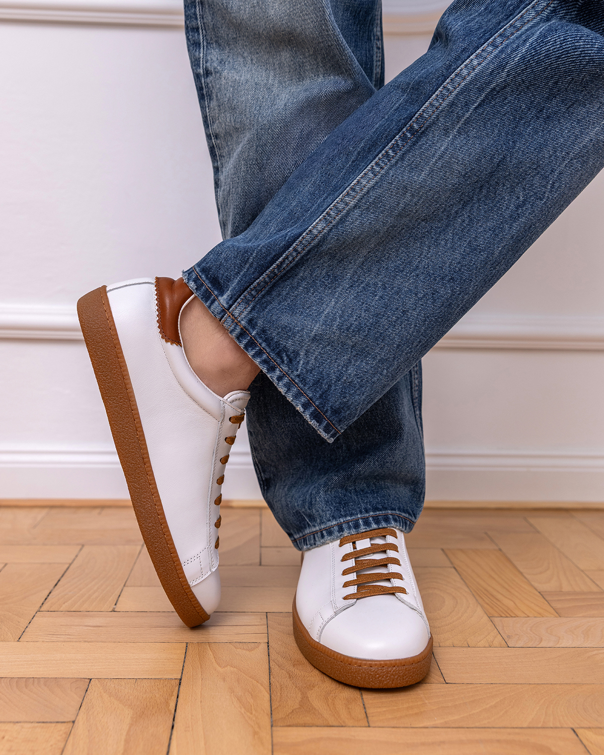 Białe trampki męskie z naturalnej skóry licowej