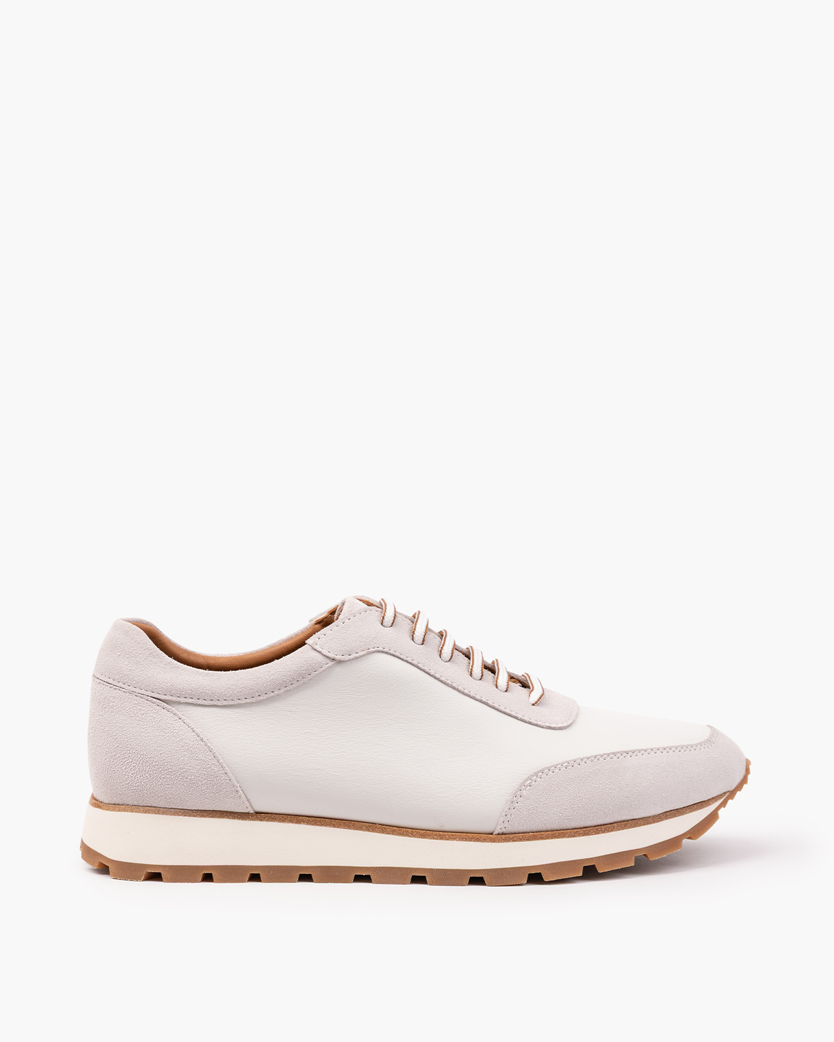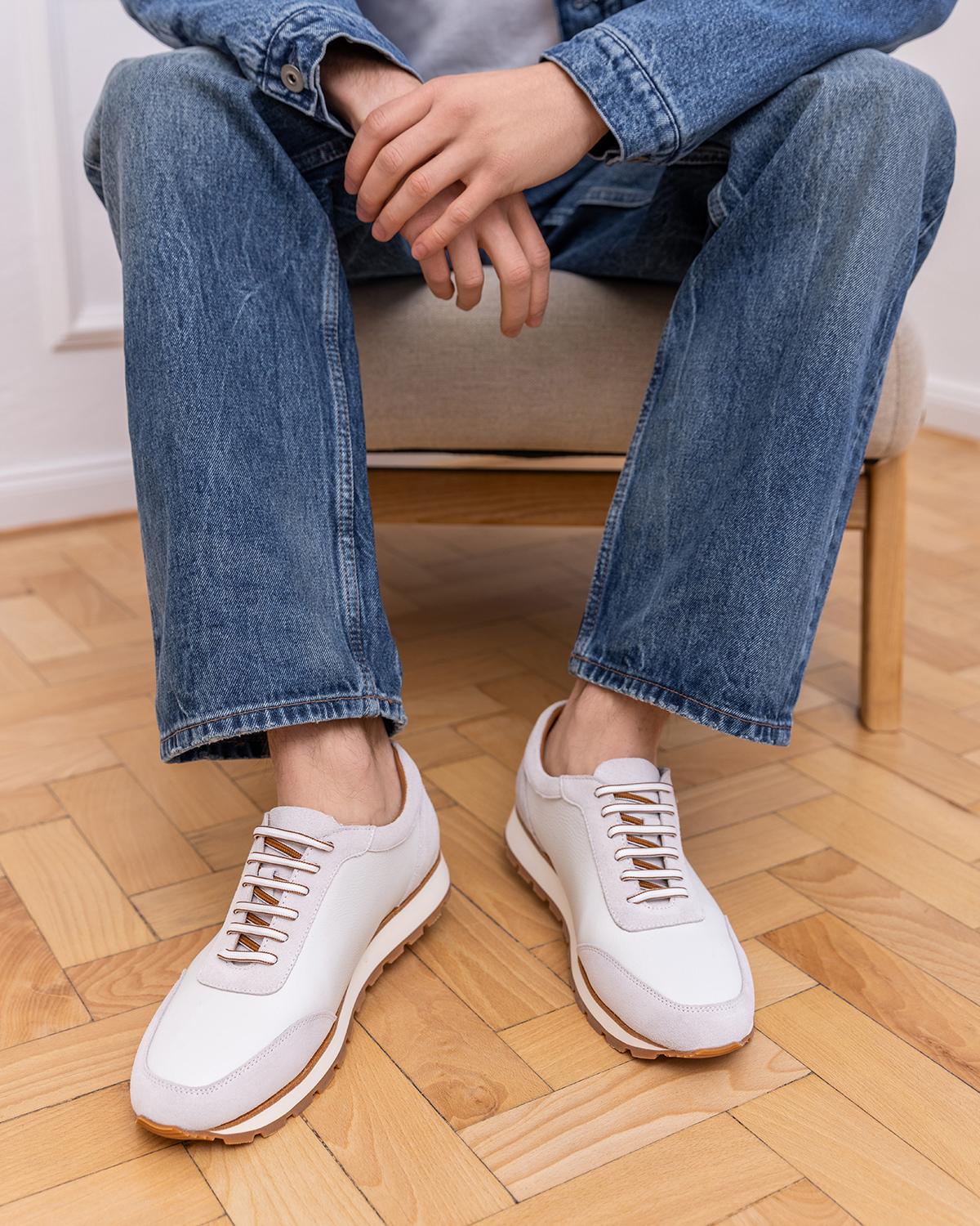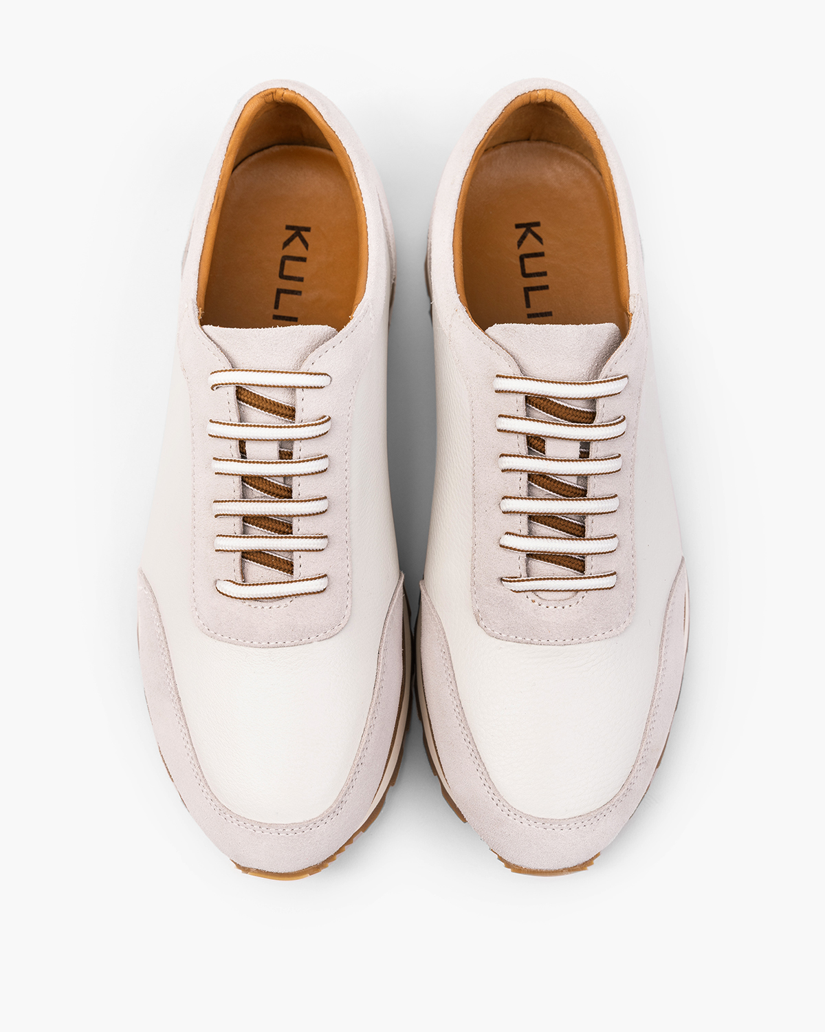 Biało-beżowe sneakersy męskie sznurowane ze skóry licowej