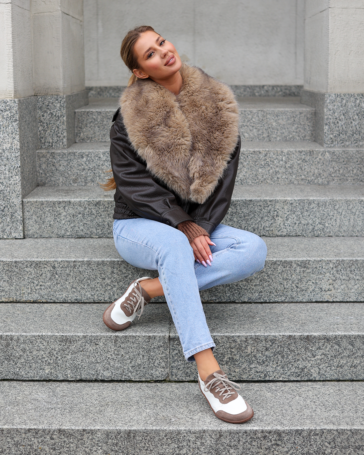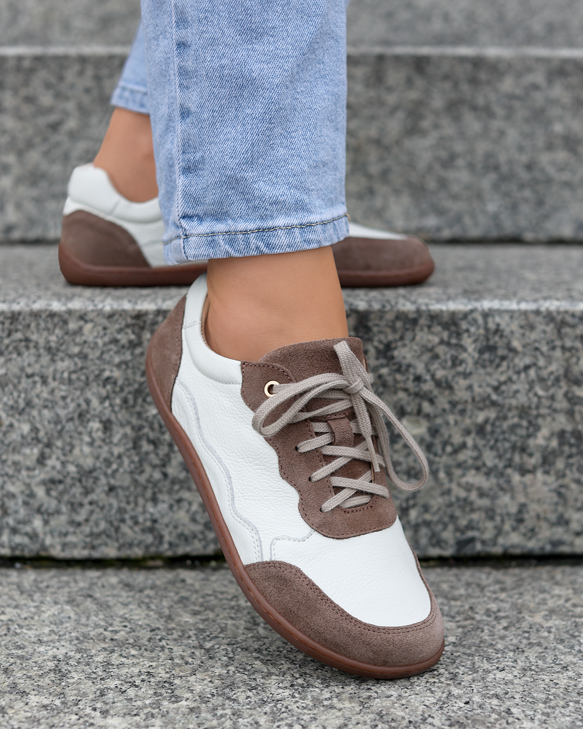 Biało-brązowe półbuty damskie barefoot ze skóry naturalnej