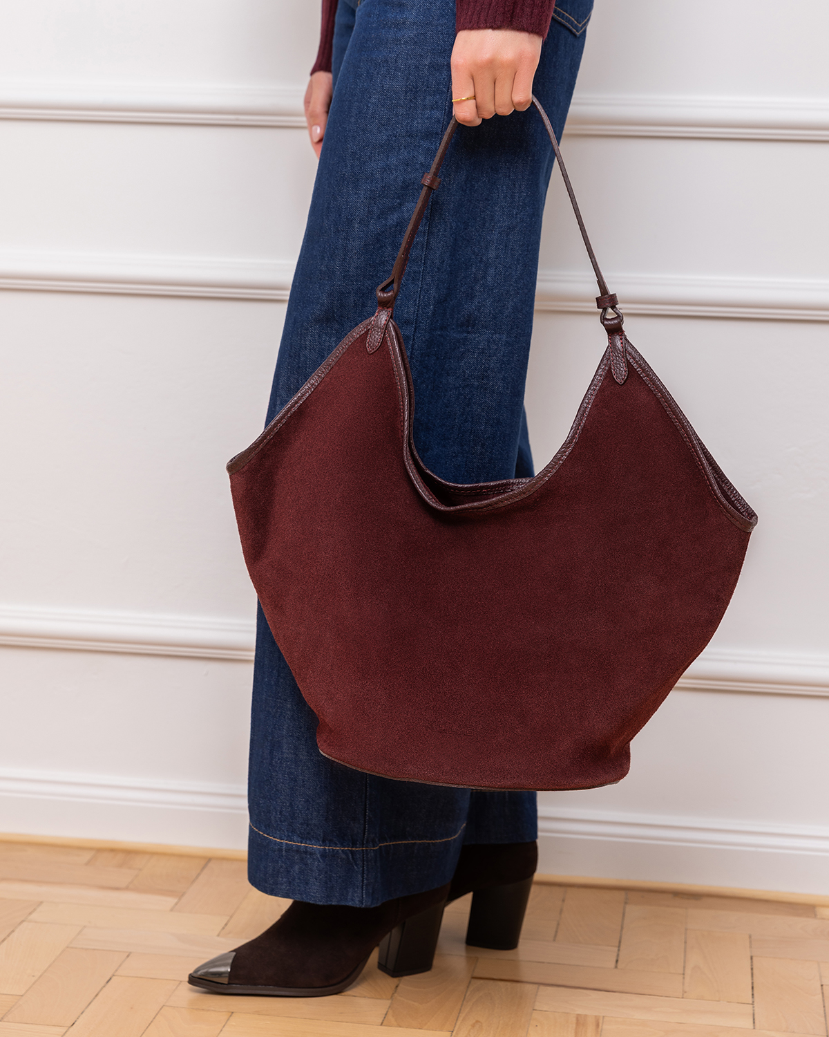 Czekoladowa torebka kuferek ze skóry zamszowej