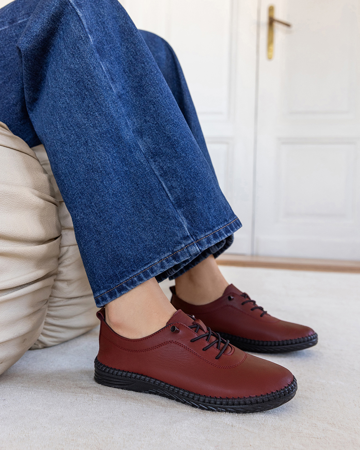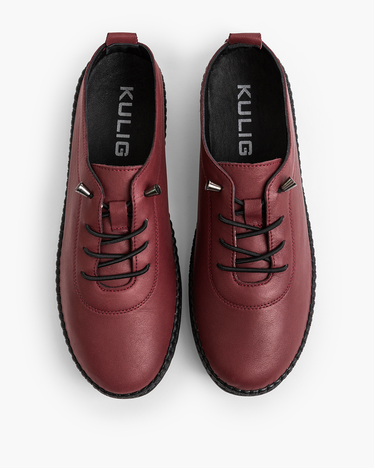 Bordowe półbuty damskie sznurowane ze skóry licowej