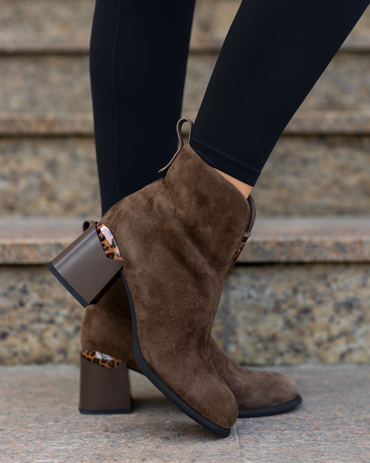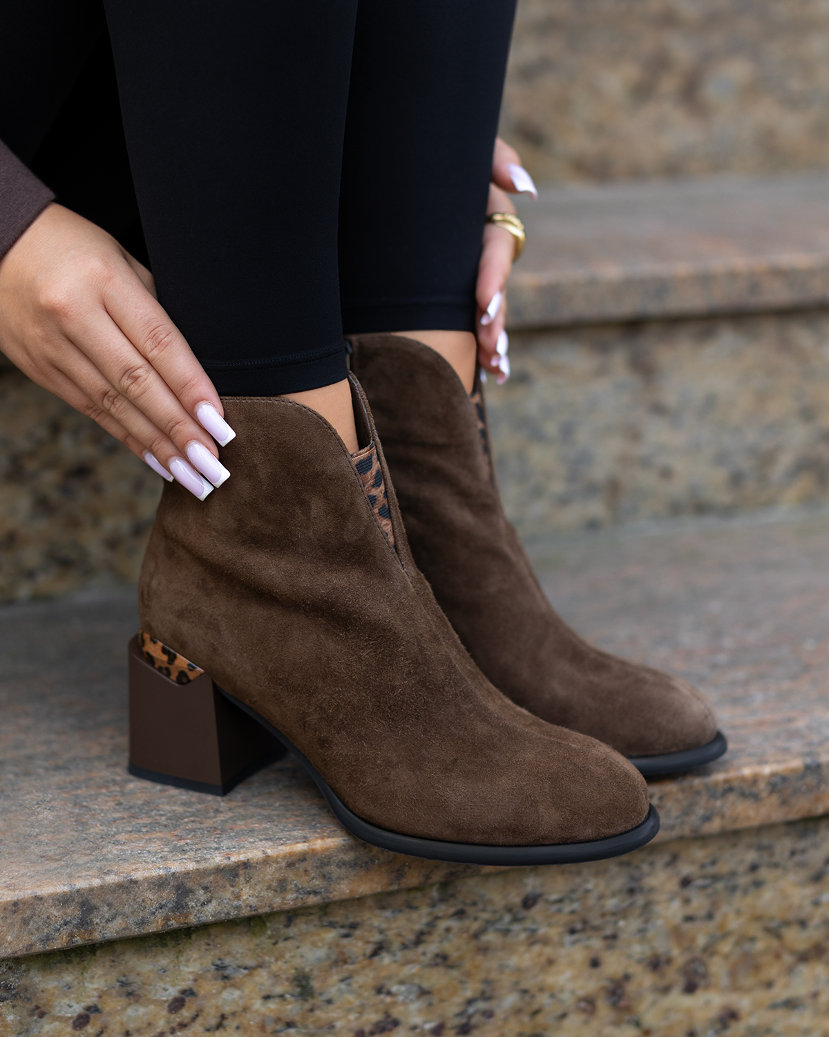 Ciemnobrązowe botki zamszowe na grubej szpilce 058-6408-BRĄZCiemnobrązowe botki zamszowe na grubej szpilce 058-6408-BRĄZ