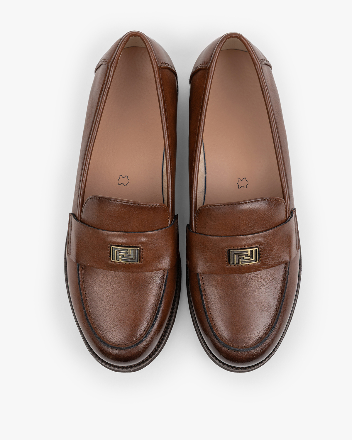 Brązowe mokasyny damskie ze skóry licowej z ozdobą