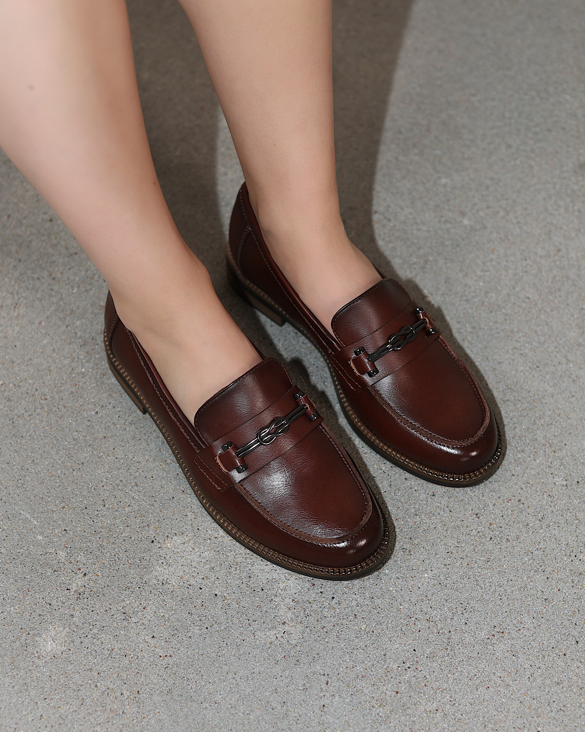 Brązowe mokasyny damskie ze skóry licowej z klamrą