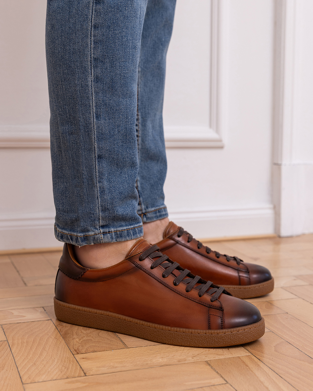 Brązowe trampki męskie ze skóry naturalnej 151-880-41-BRĄZBrązowe trampki męskie ze skóry naturalnej 151-880-41-BRĄZ