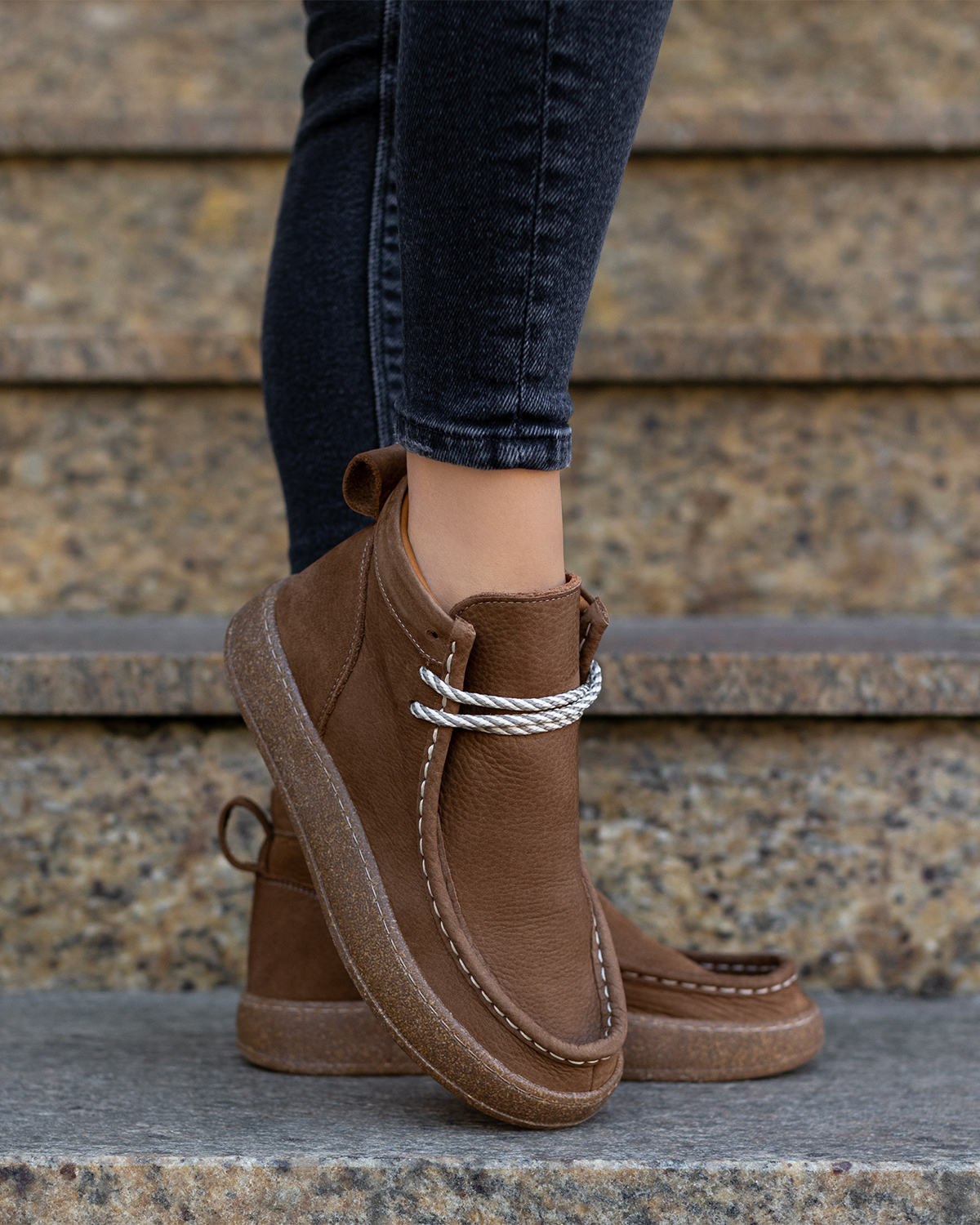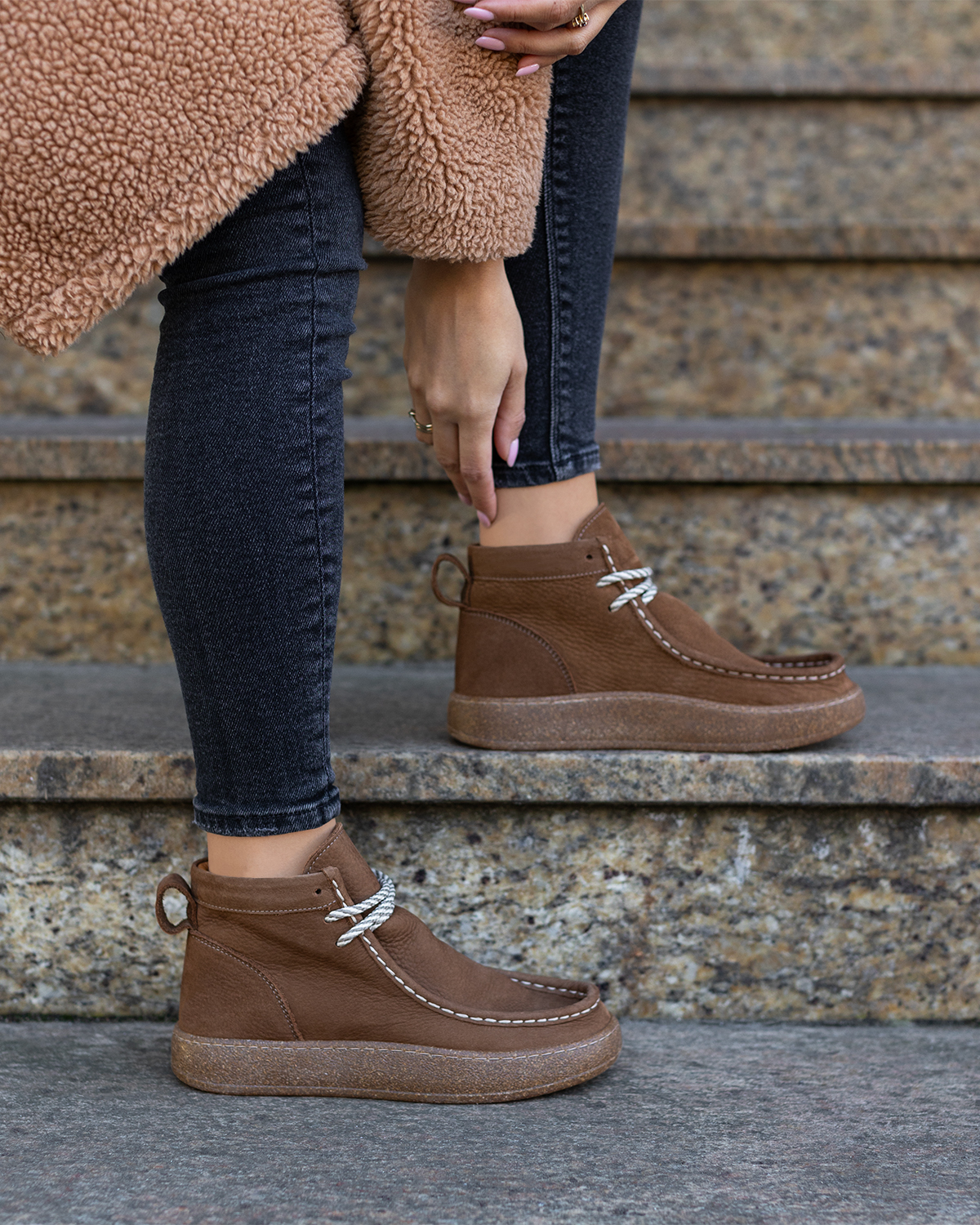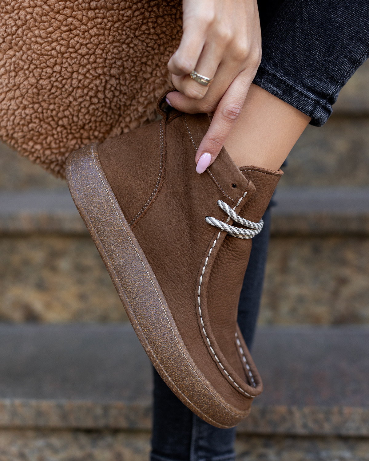 Brązowe trzewiki damskie z naturalnej skóry nubukowej