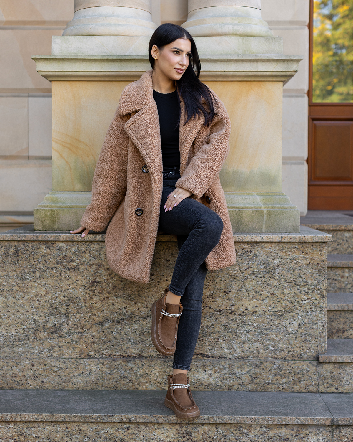 Brązowe trzewiki damskie z naturalnej skóry nubukowej 147-104142-BRĄZBrązowe trzewiki damskie z naturalnej skóry nubukowej 147-104142-BRĄZ