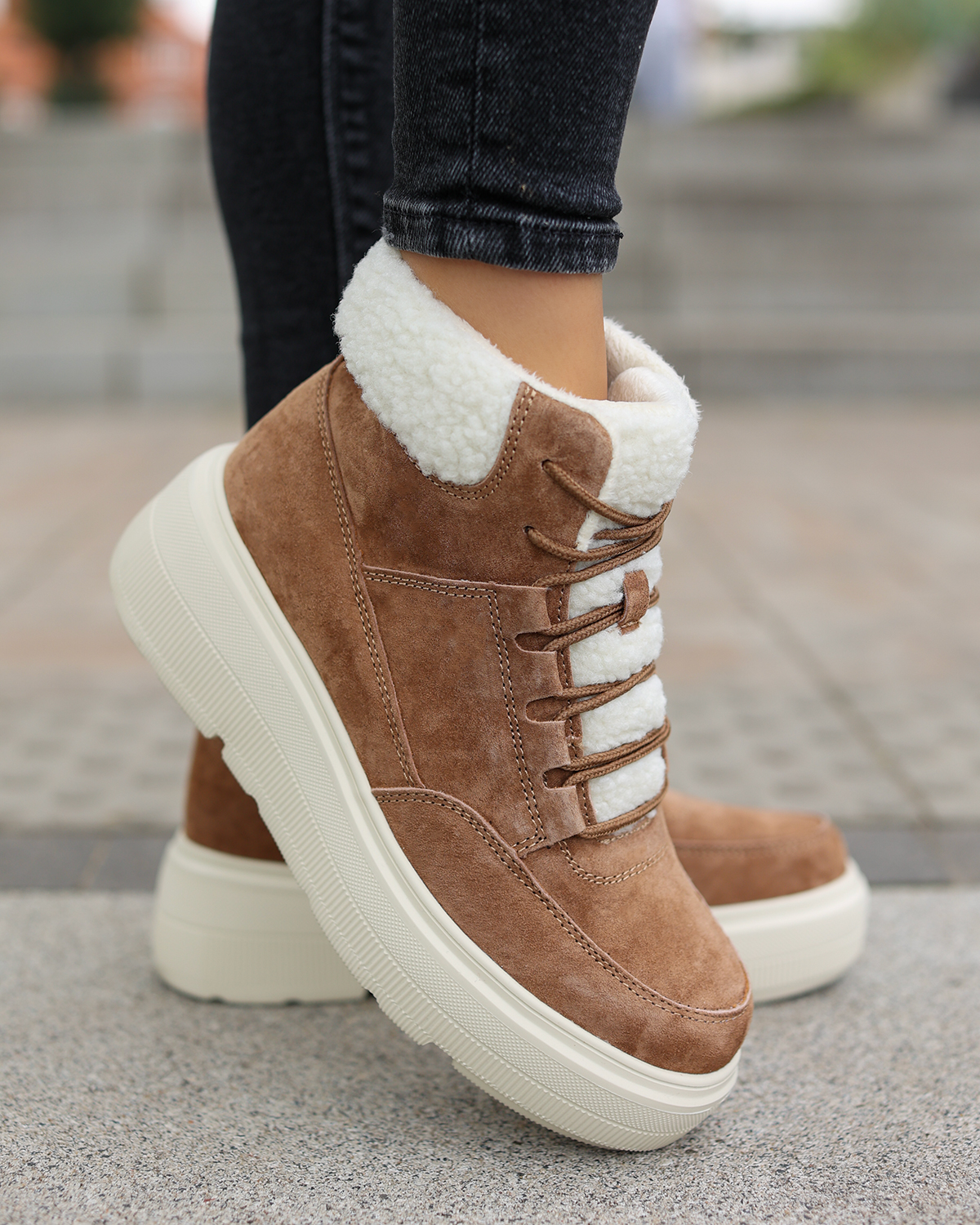 Model został osadzony na stabilnej platformie o wysokości 4,5 cm, która amortyzuje wstrząsy i dodaje kilku centymetrów wzrostu bez utraty komfortu. Cholewka o wysokości 11 cm chroni przed chłodem i wiatrem, sprawiając, że buty sprawdzą się zarówno w miejskich warunkach, jak i podczas dłuższych spacerów. To idealne trzewiki na co dzień – ciepłe, wygodne i stylowe, stworzone z myślą o kobietach, które chcą czuć się komfortowo w każdej sytuacji.