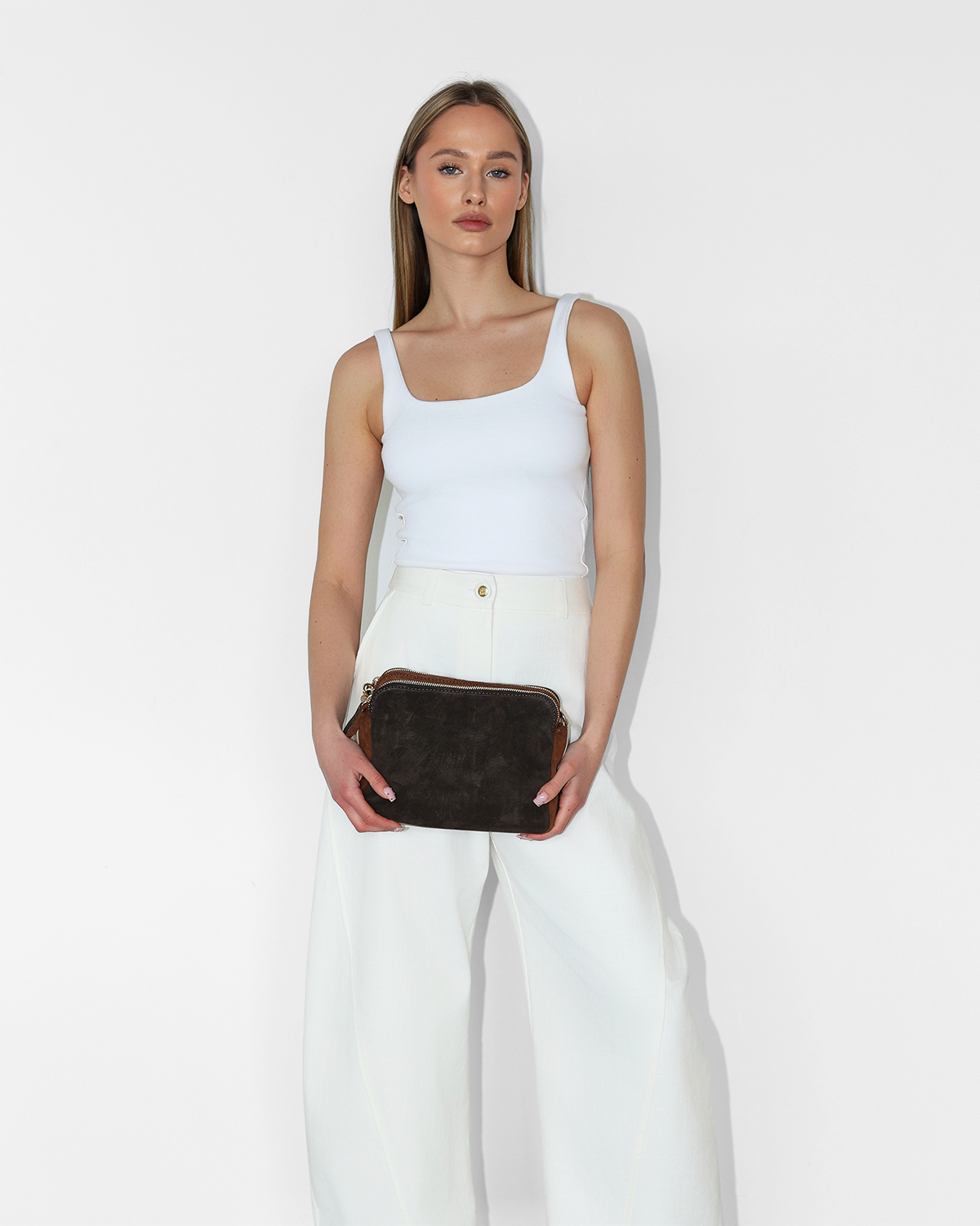 Ciemnobrązowa torebka damska ze skóry zamszowej na ramię