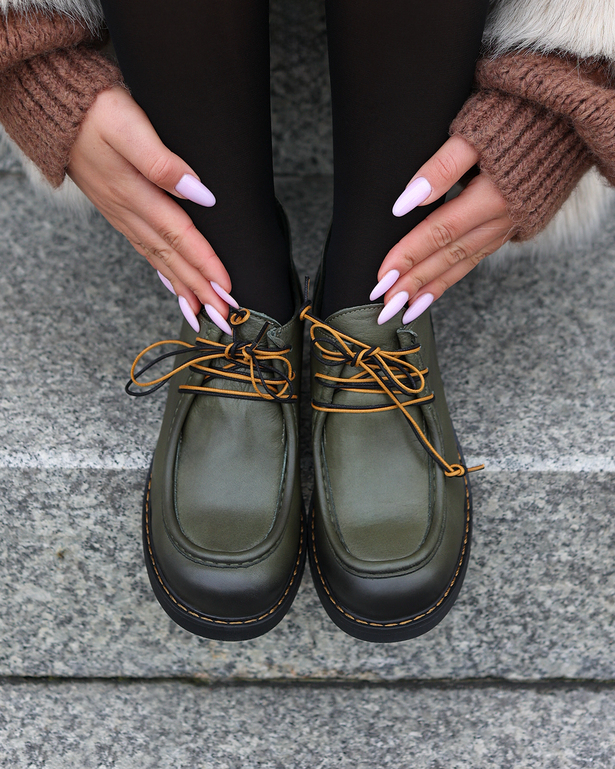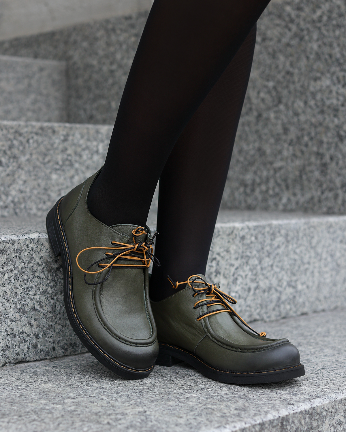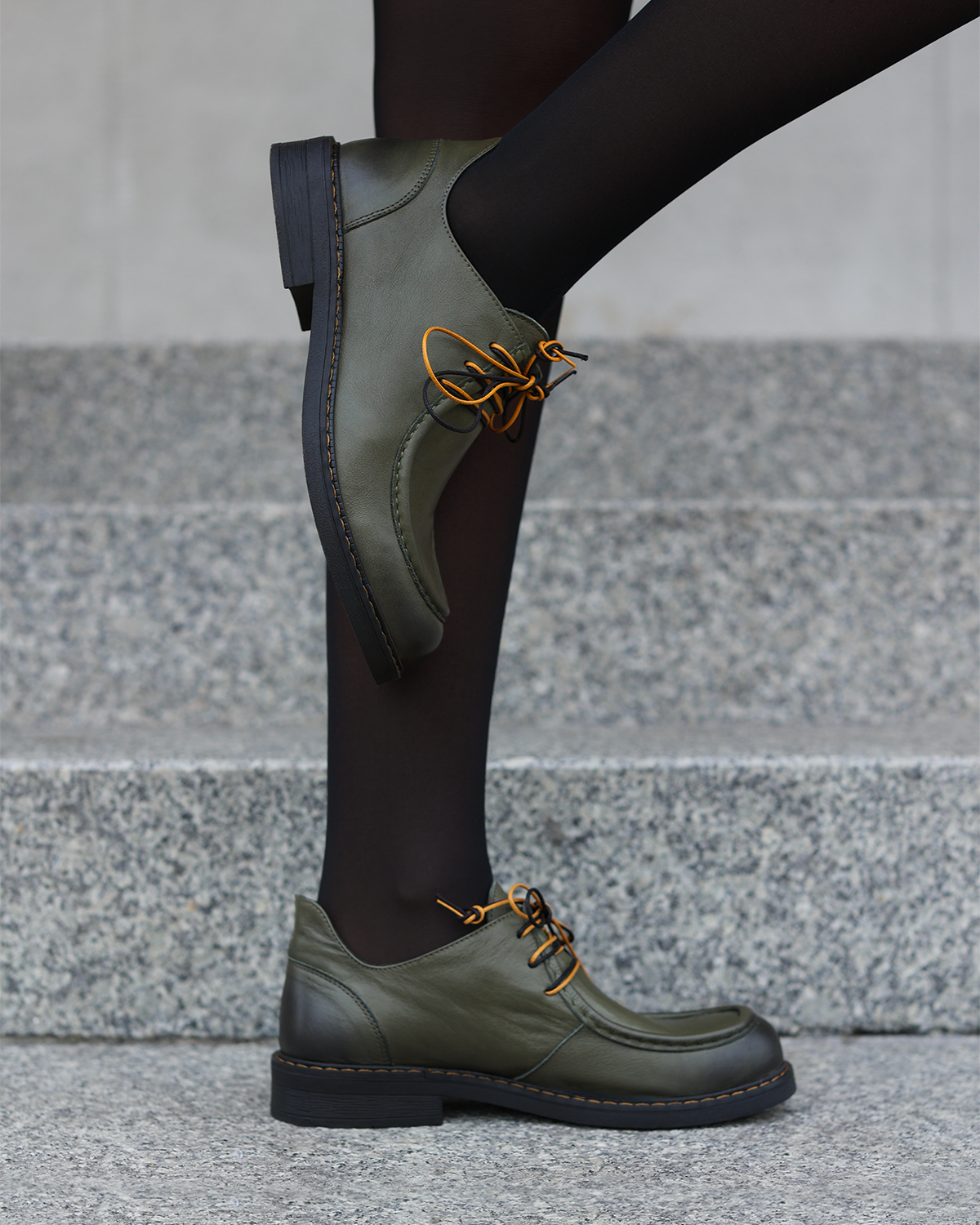 Oliwkowe półbuty damskie skórzane