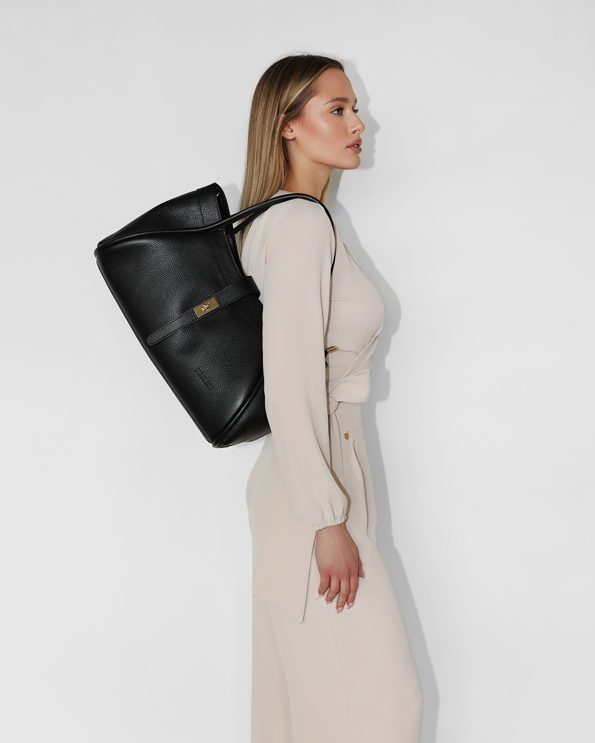 Beżowa duża torebka damska skórzana