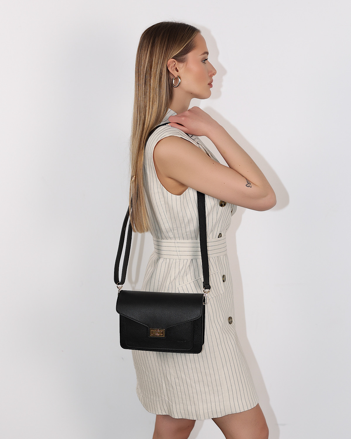 Czarna mała torebka damska ze skóry licowej z klapką