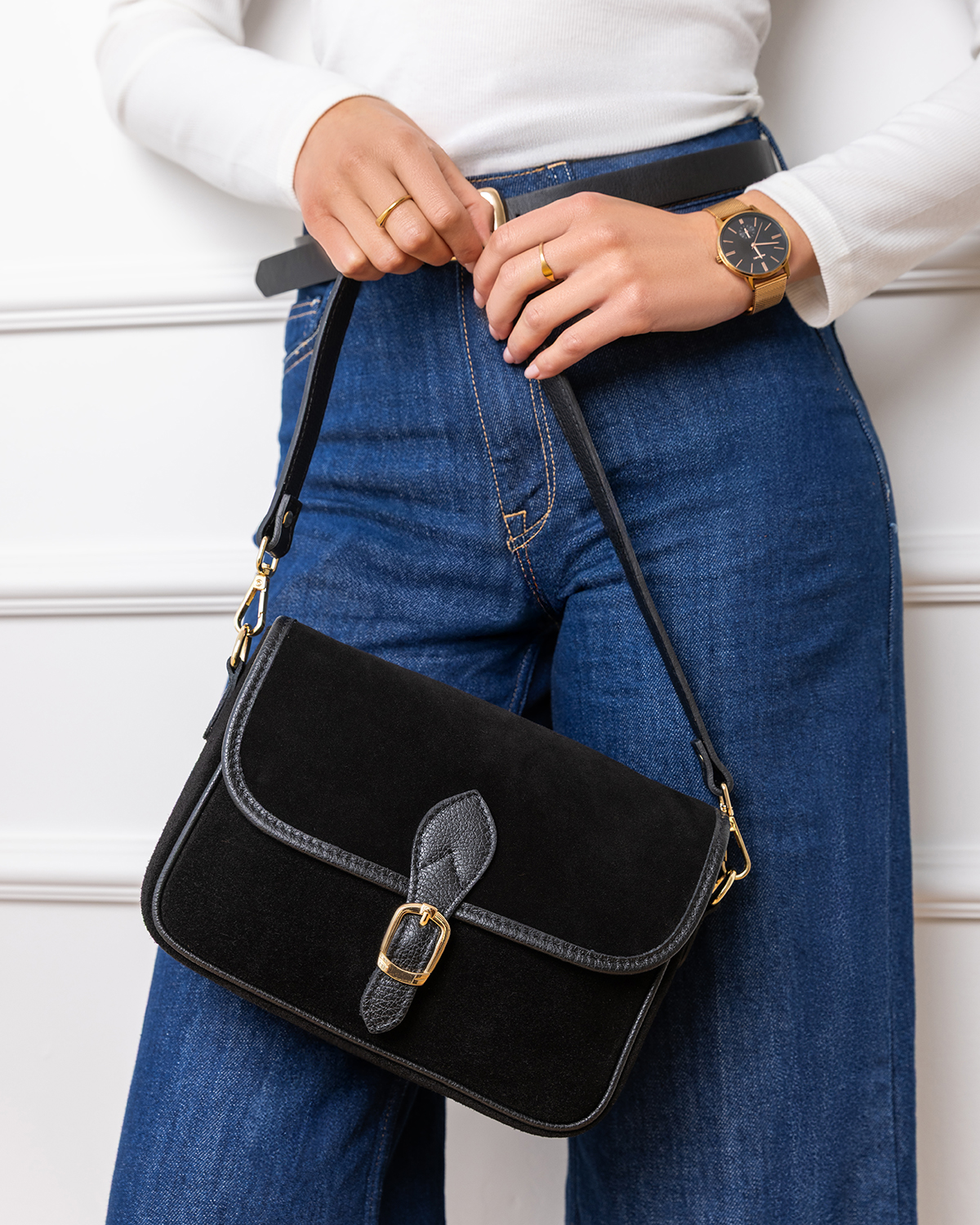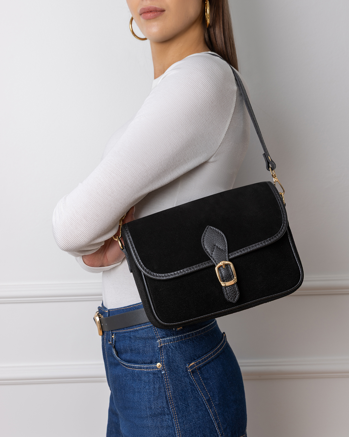 Czarna torebka damska zamszowa na ramię 154-8156-CZARNYCzarna torebka damska zamszowa na ramię 154-8156-CZARNY