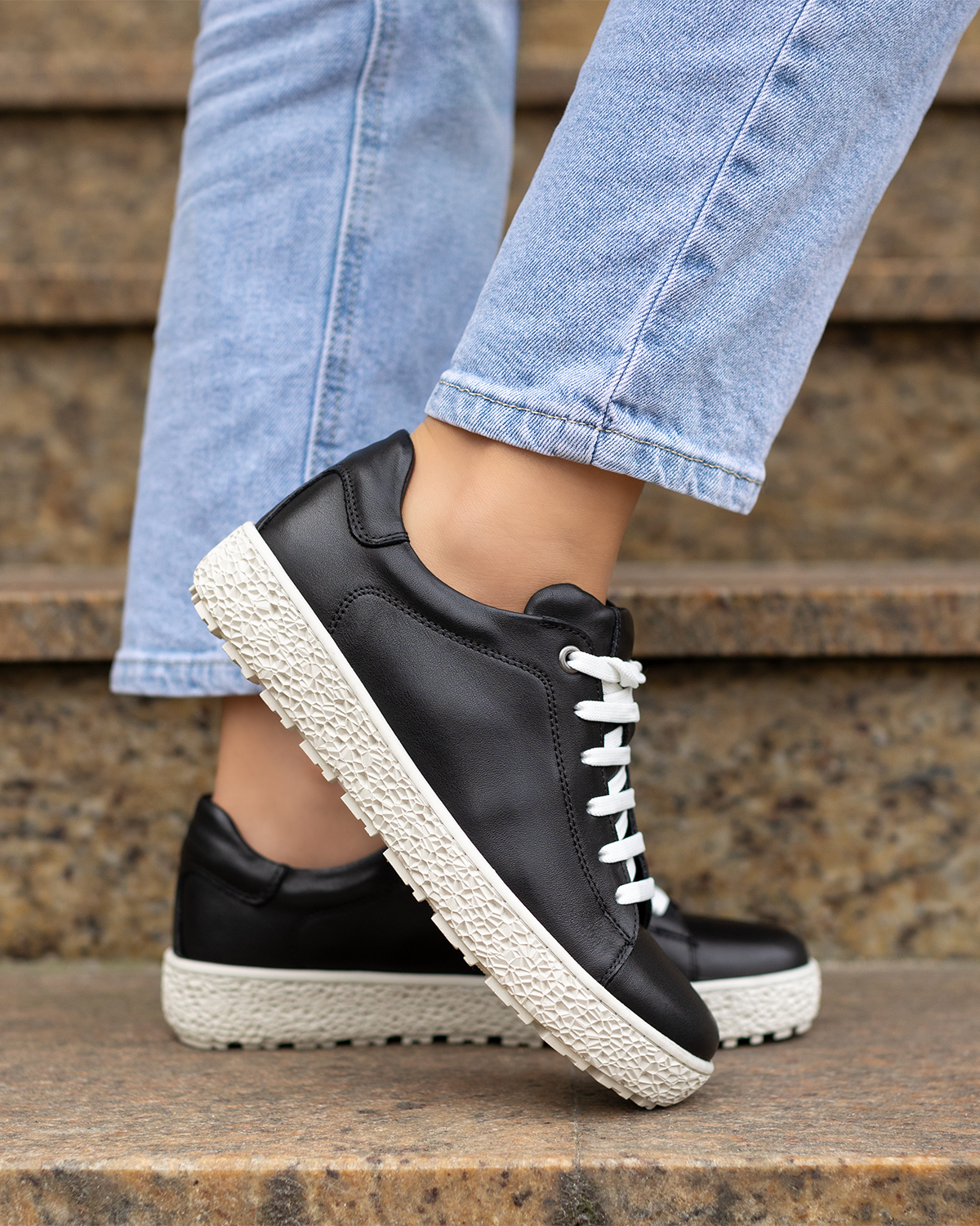 Czarne adidasy damskie sznurowane ze skóry naturalnej 148-52062-CZARNYCzarne adidasy damskie sznurowane ze skóry naturalnej 148-52062-CZARNY