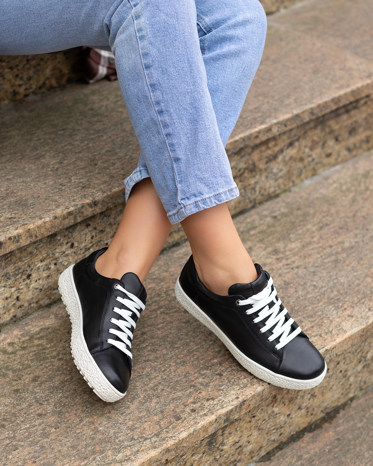 Czarne trampki damskie ze skóry licowej 005-59622-CZ-1Czarne trampki damskie ze skóry licowej 005-59622-CZ-1