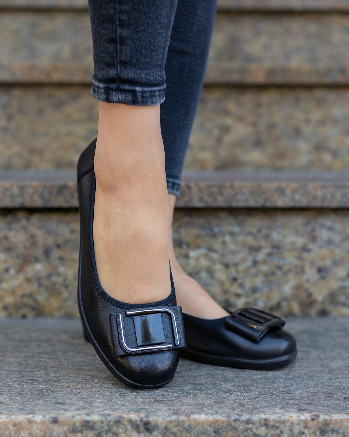 Czarne baleriny damskie skórzane z klamrą 148-86119-CZARNYCzarne baleriny damskie skórzane z klamrą 148-86119-CZARNY