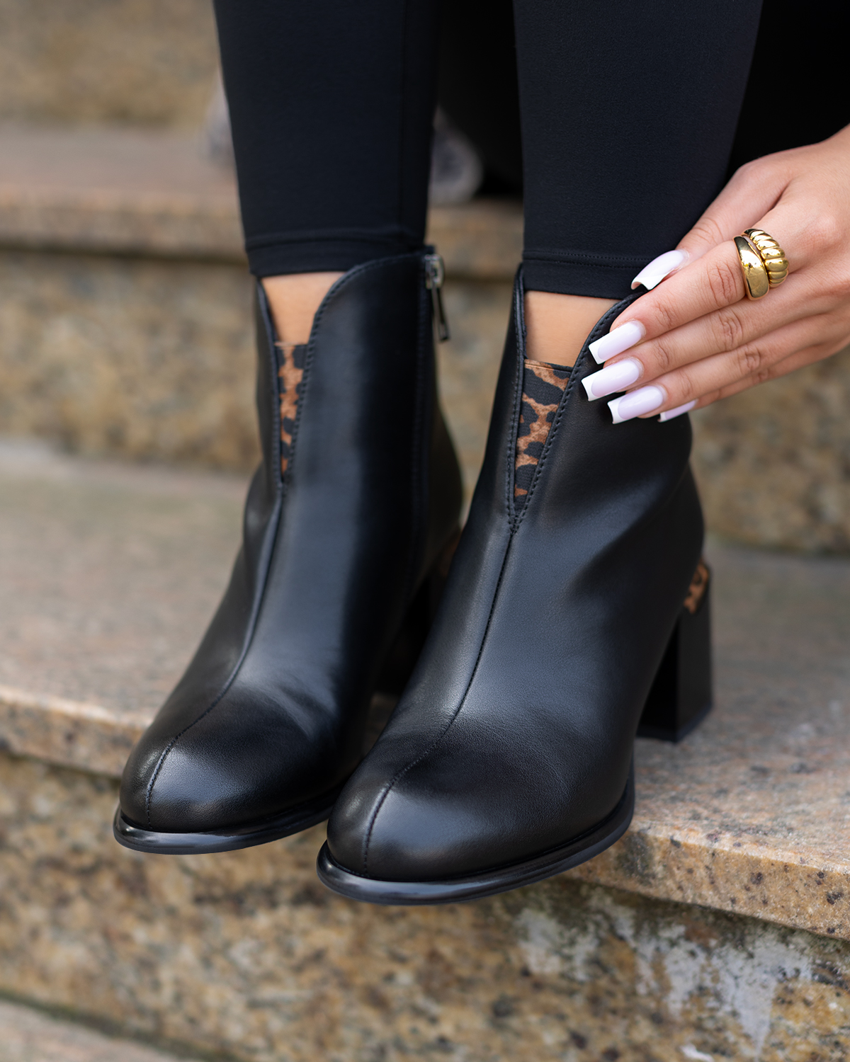 Czarne botki ze skóry licowej na zamek 105-85119-CZARNYCzarne botki ze skóry licowej na zamek 105-85119-CZARNY