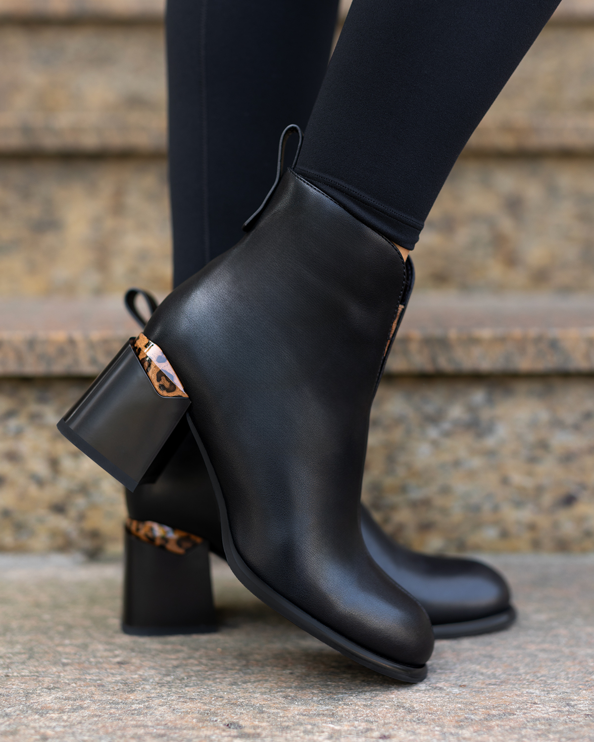 Czarne botki damskie skórzane na klocku 105-11866-CZARNYCzarne botki damskie skórzane na klocku 105-11866-CZARNY