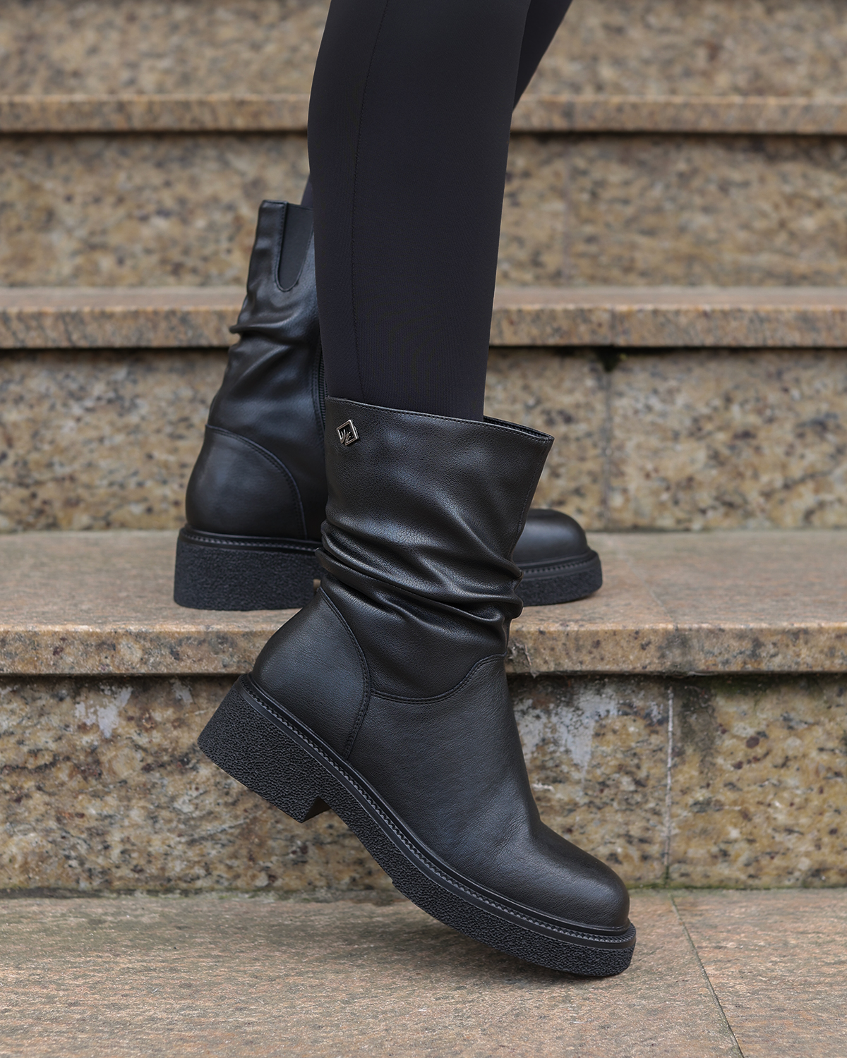 Czarne botki damskie skórzane z marszczoną cholewką 139-61306-czarny