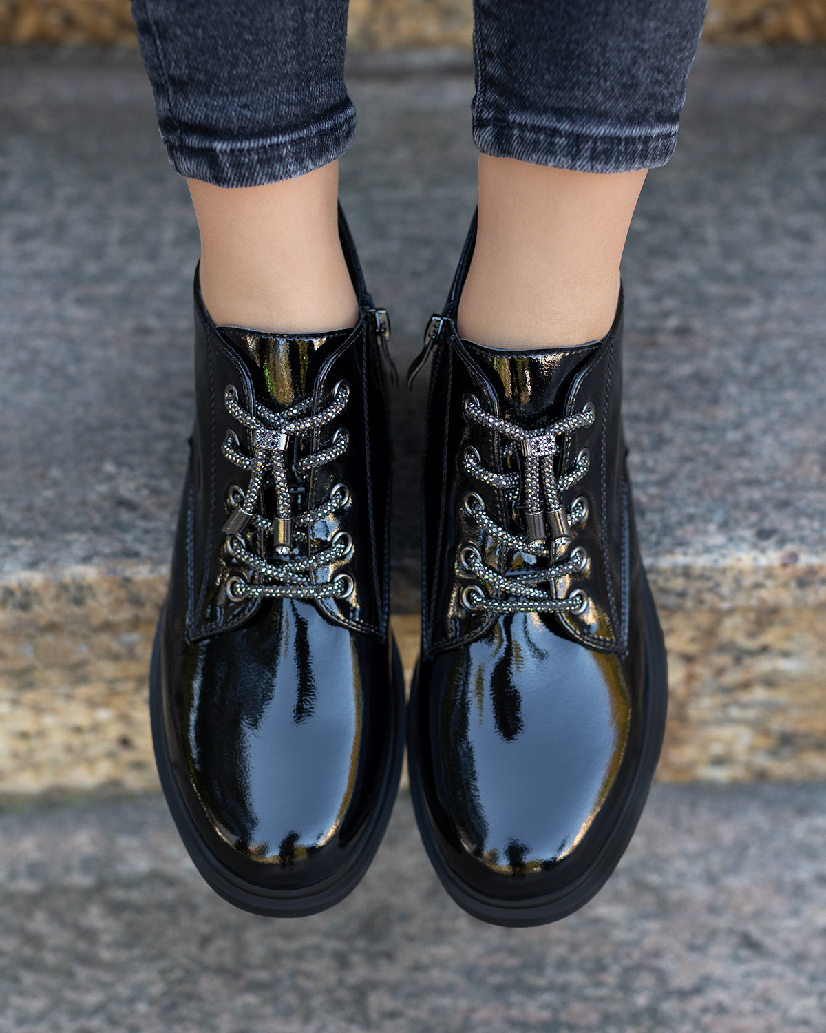 Czarne botki damskie sznurowane ze skóry lakierowanej 131-25-421-CZARNCzarne botki damskie sznurowane ze skóry lakierowanej 131-25-421-CZARN