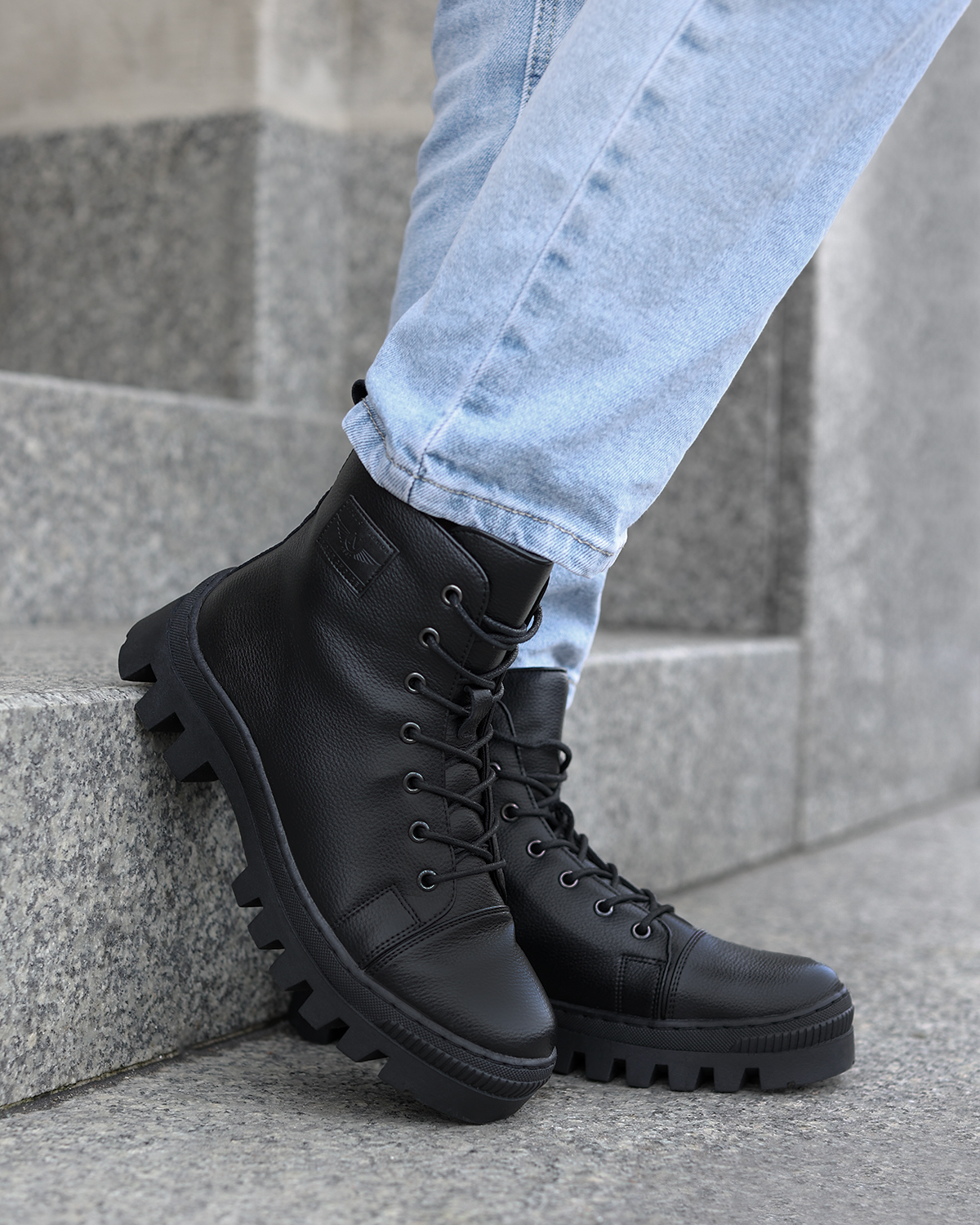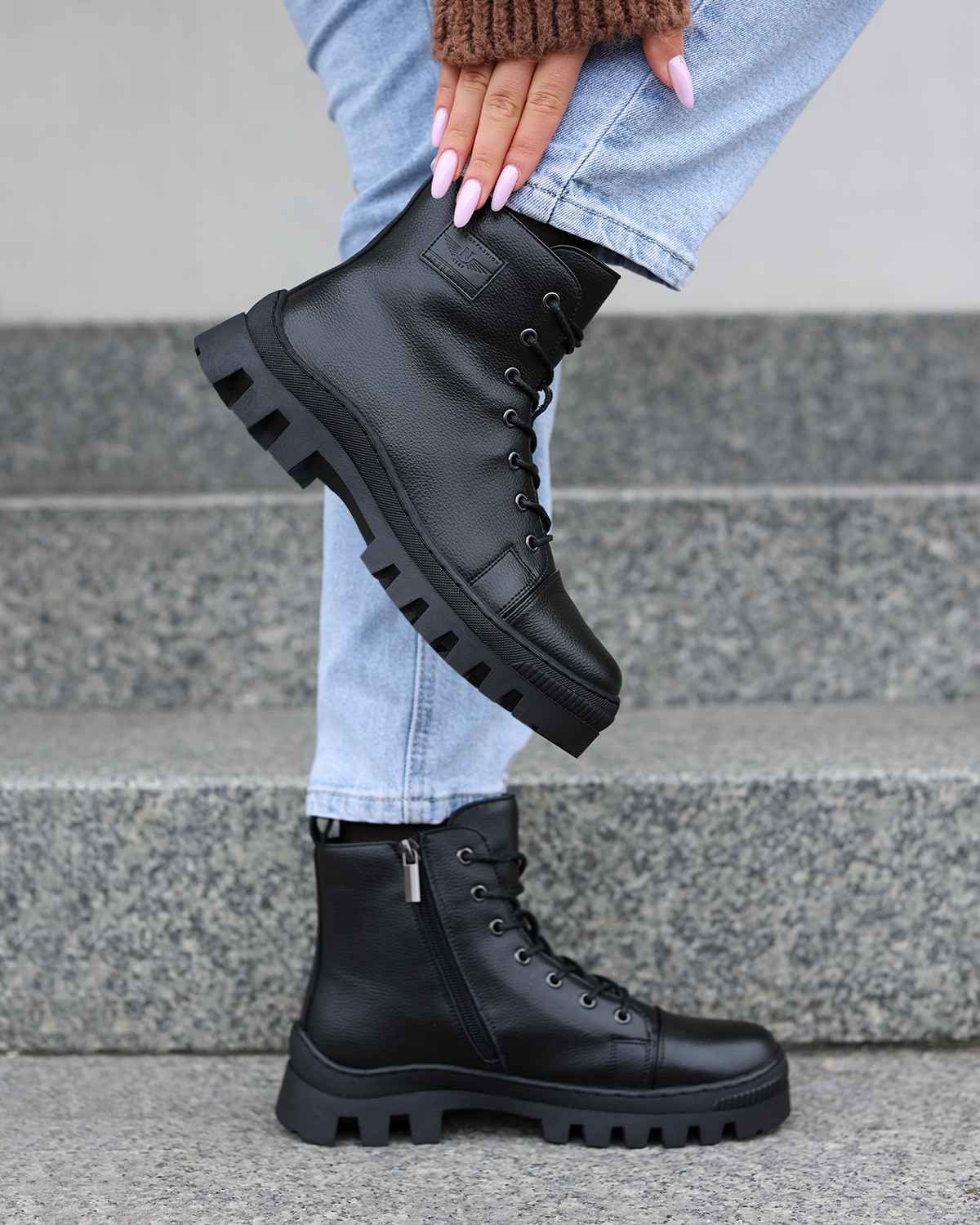 Czarne botki damskie sznurowane ze skóry naturalnej 139-07391-CZARNYCzarne botki damskie sznurowane ze skóry naturalnej 139-07391-CZARNY
