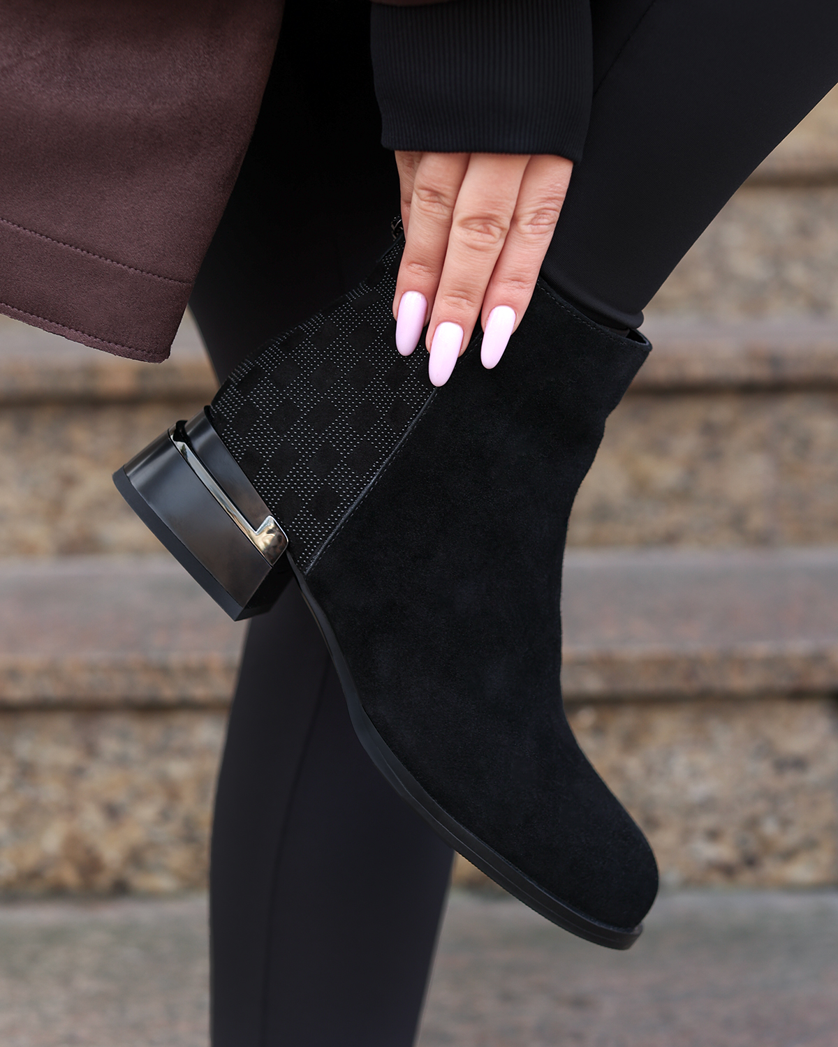 Czarne botki damskie zamszowe na klocku z ozdobą 131-25-281-MIXCzarne botki damskie zamszowe na klocku z ozdobą 131-25-281-MIX