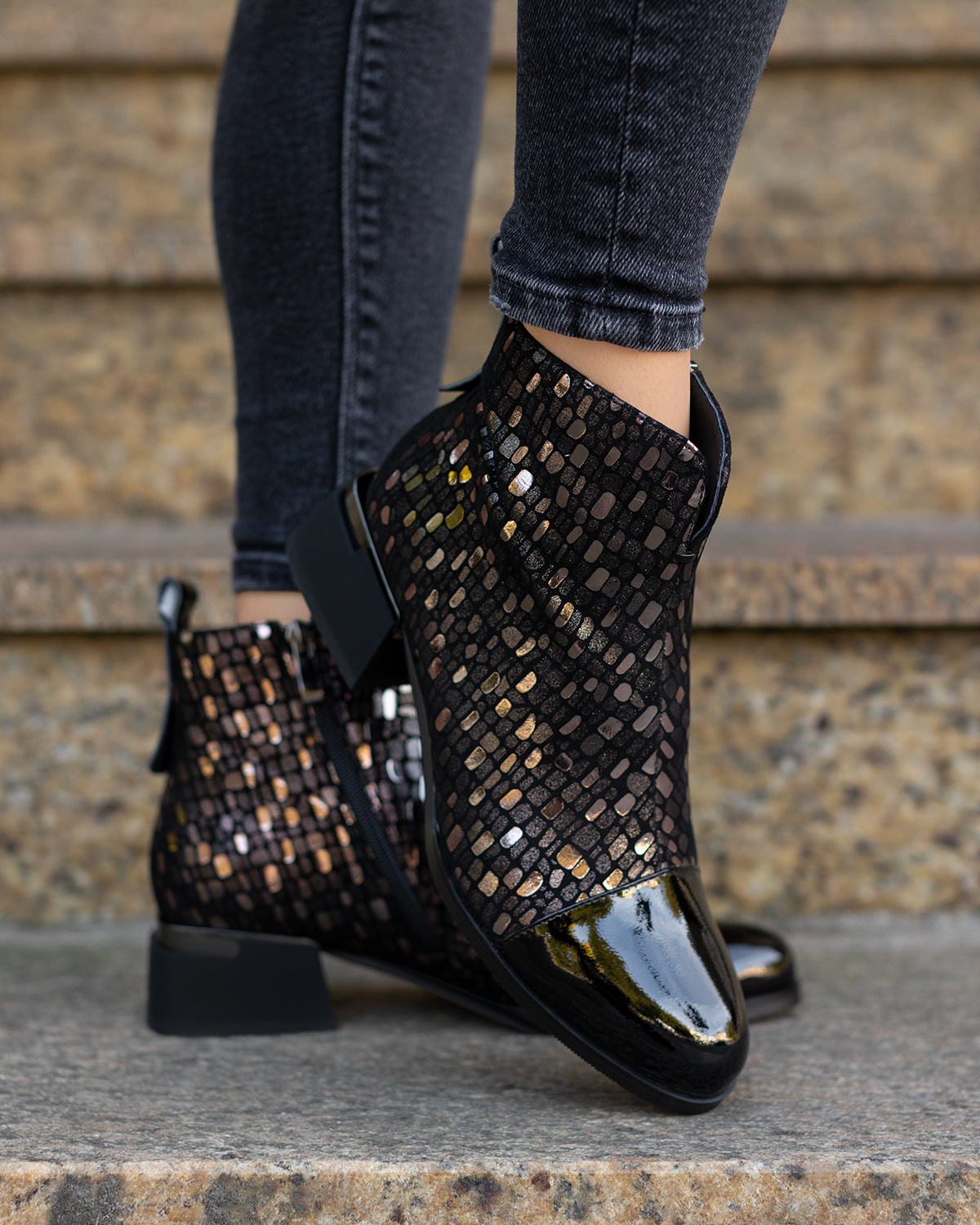 Czarne botki lakierowane na klocku 131-078-39Czarne botki lakierowane na klocku 131-078-39