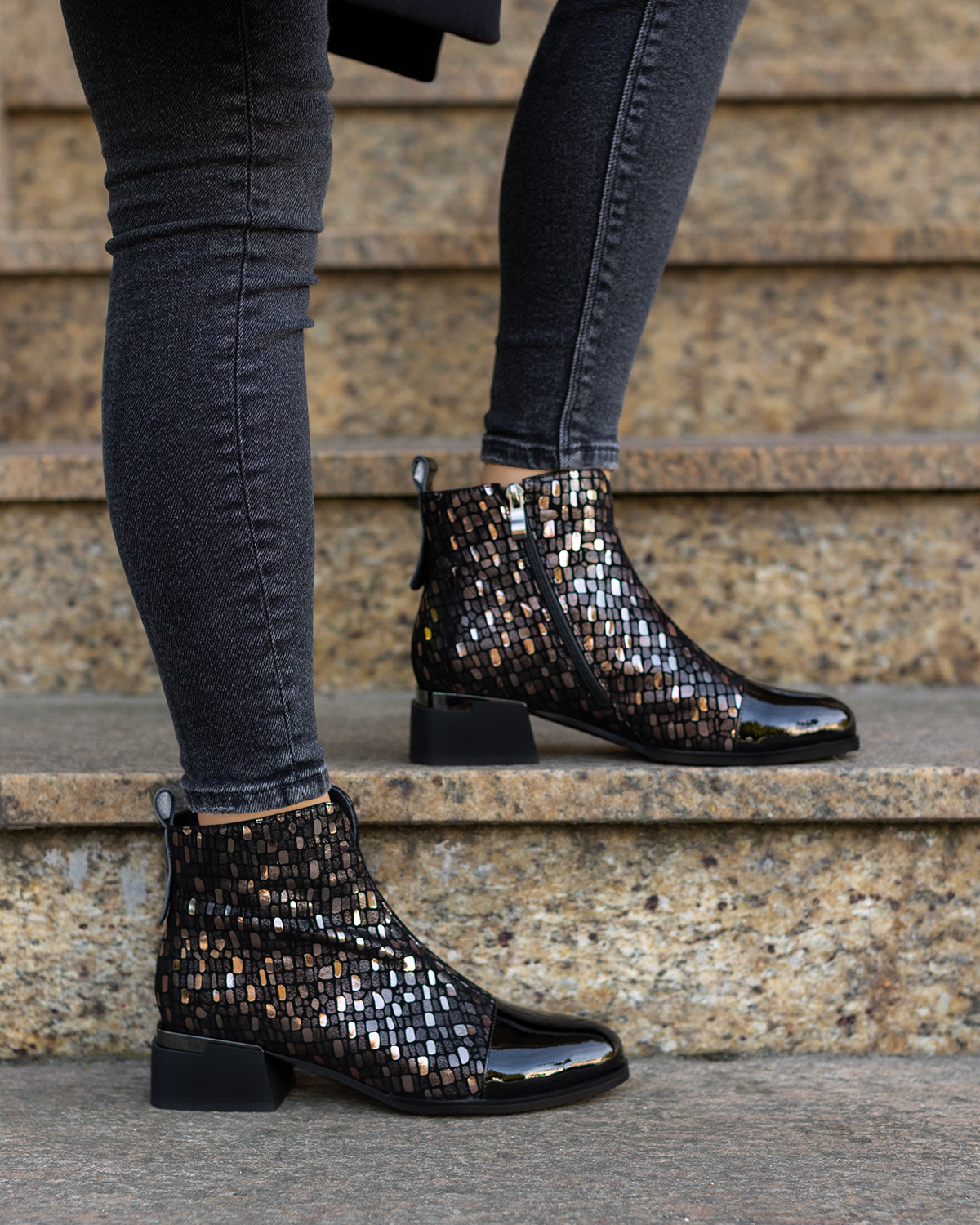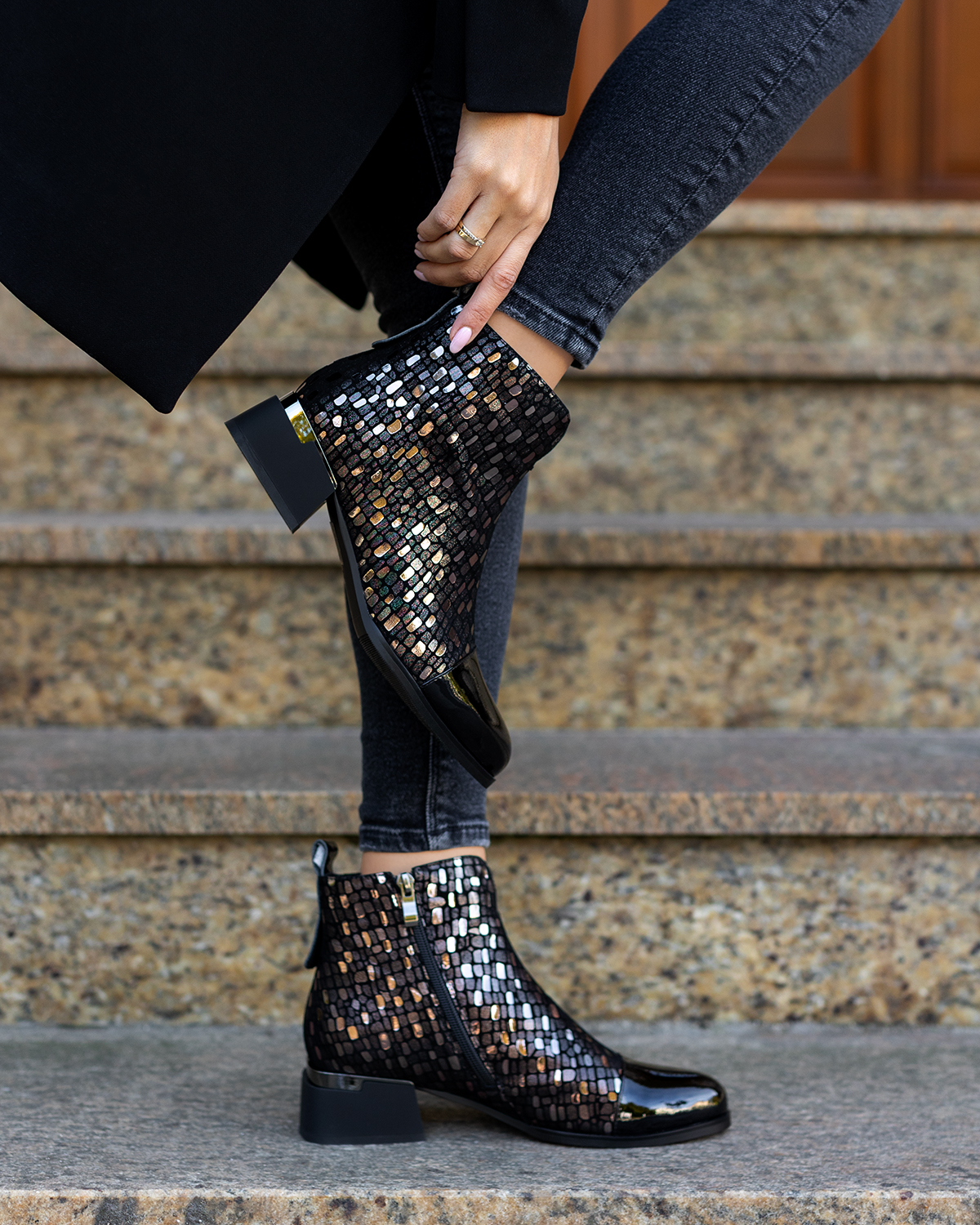 Czarne botki damskie ze skóry lakierowanej z koralikami 131-630-czarnyCzarne botki damskie ze skóry lakierowanej z koralikami 131-630-czarny