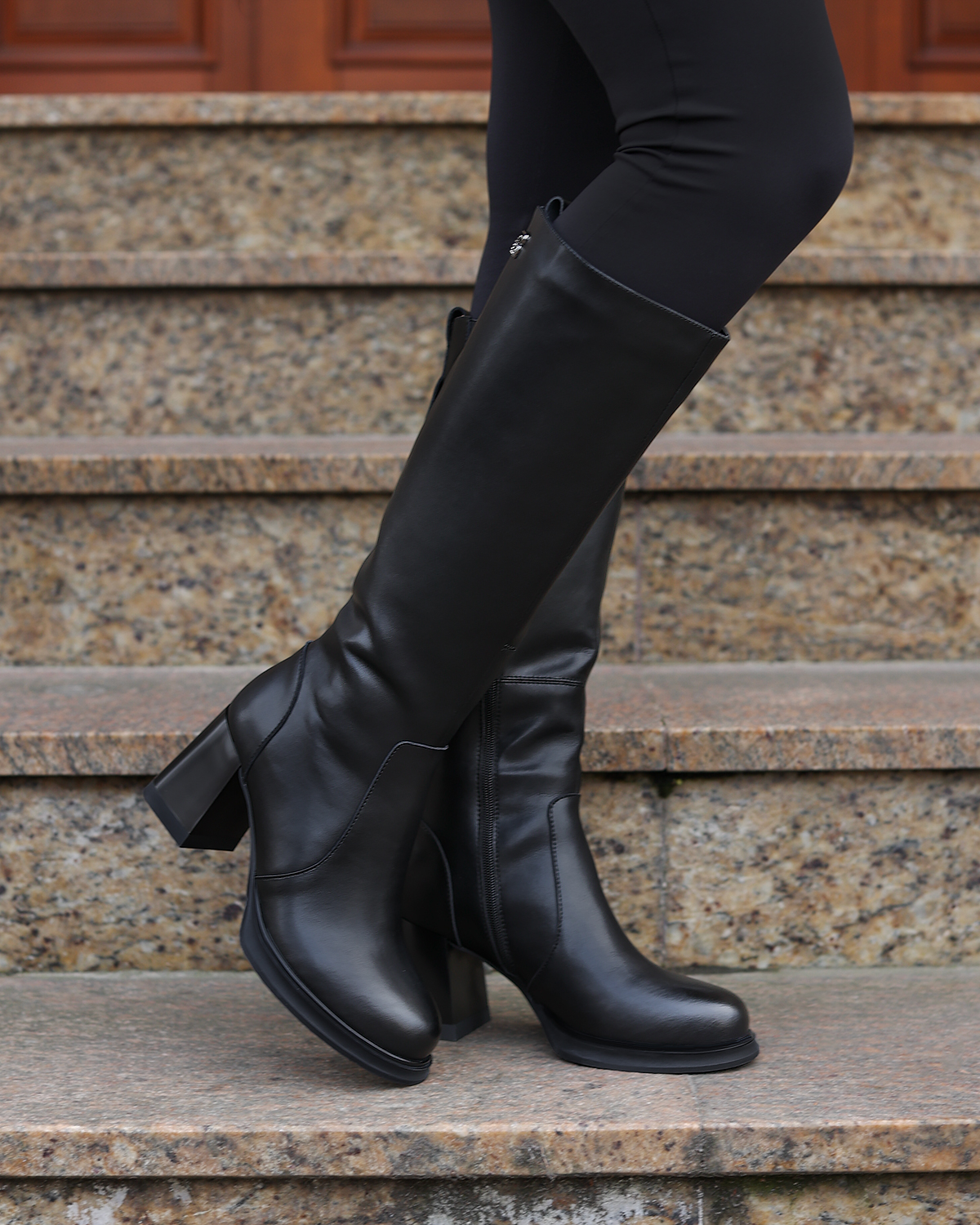 Czarne kozaki damskie ze skóry licowej na klocku 131-25-011-CZARNCzarne kozaki damskie ze skóry licowej na klocku 131-25-011-CZARN