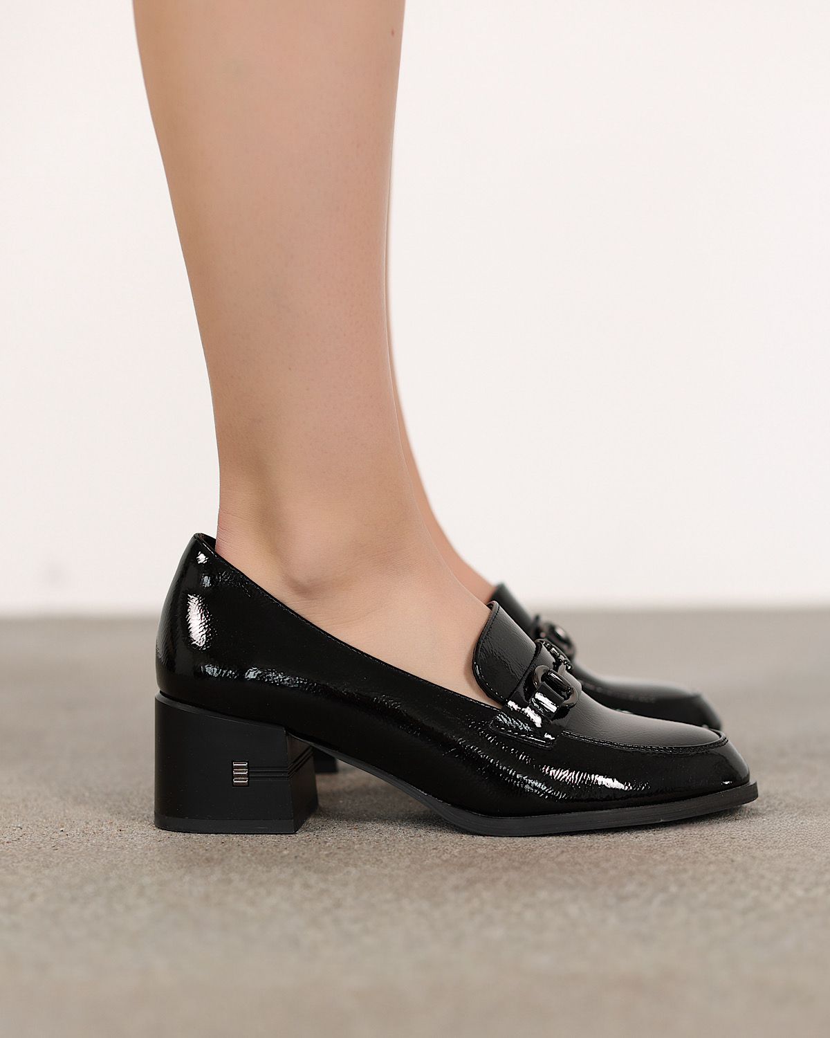 Czarne mokasyny damskie ze skóry lakierowanej na klocku 105-91181-CZARNYCzarne mokasyny damskie ze skóry lakierowanej na klocku 105-91181-CZARNY