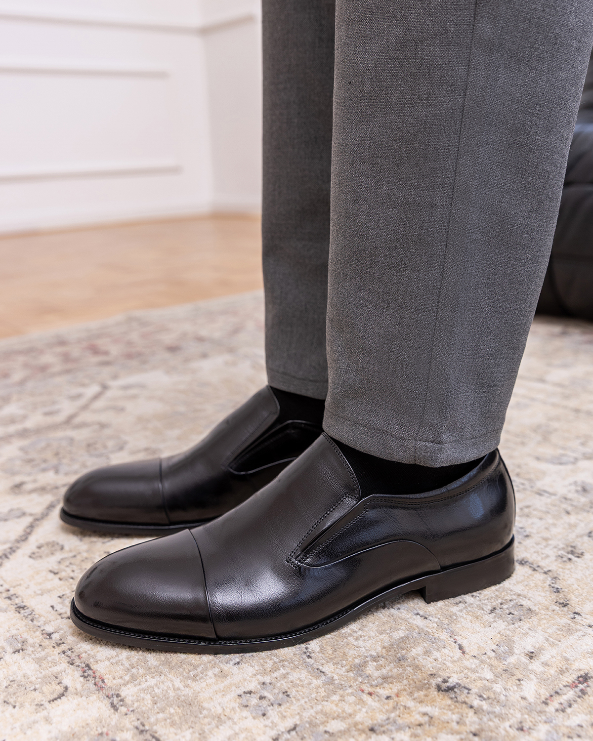 Czarne mokasyny męskie wizytowe ze skóry licowej 143-38-4152-CZARCzarne mokasyny męskie wizytowe ze skóry licowej 143-38-4152-CZAR