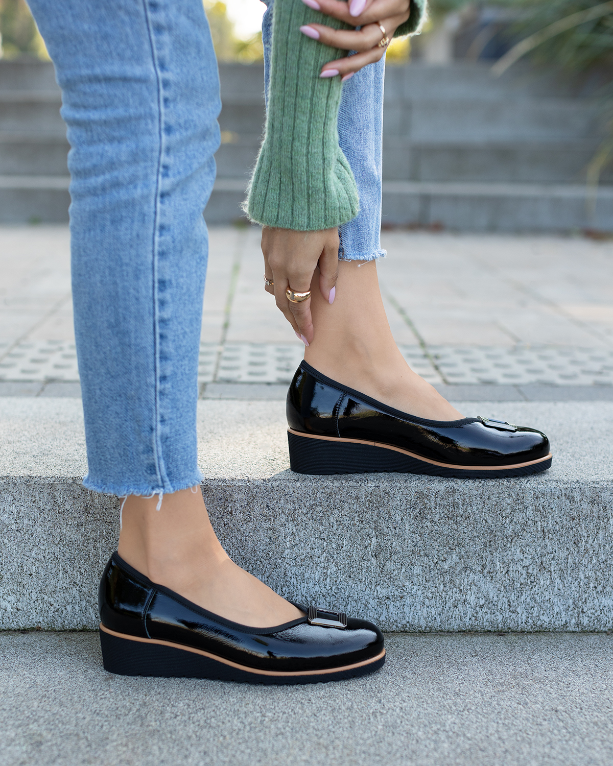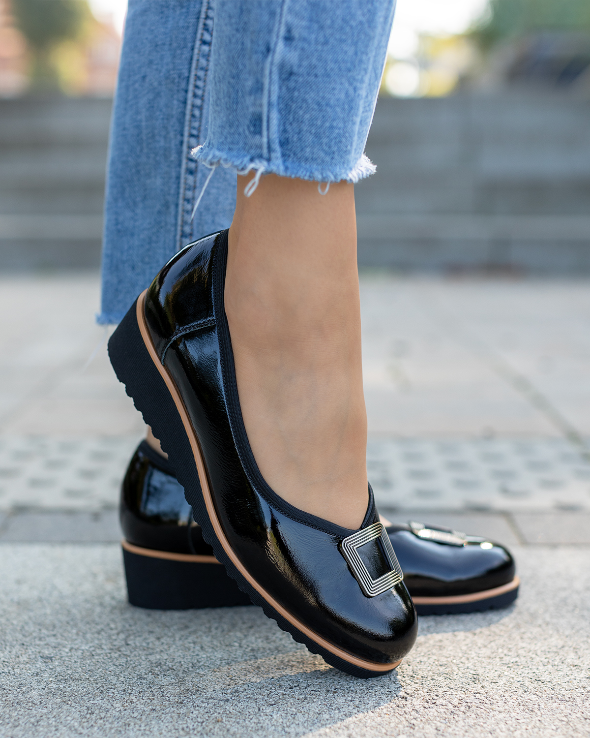 Czarne półbuty damskie lakierowane na koturnie 119-5401-CZA-LAKCzarne półbuty damskie lakierowane na koturnie 119-5401-CZA-LAK