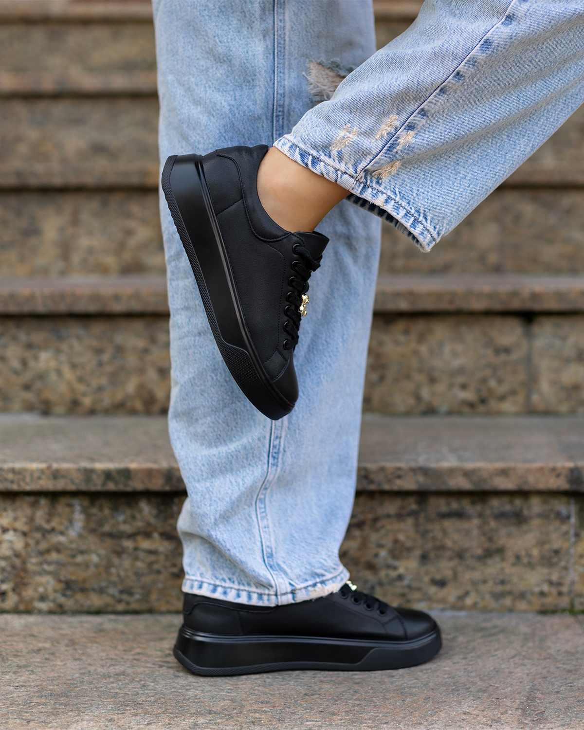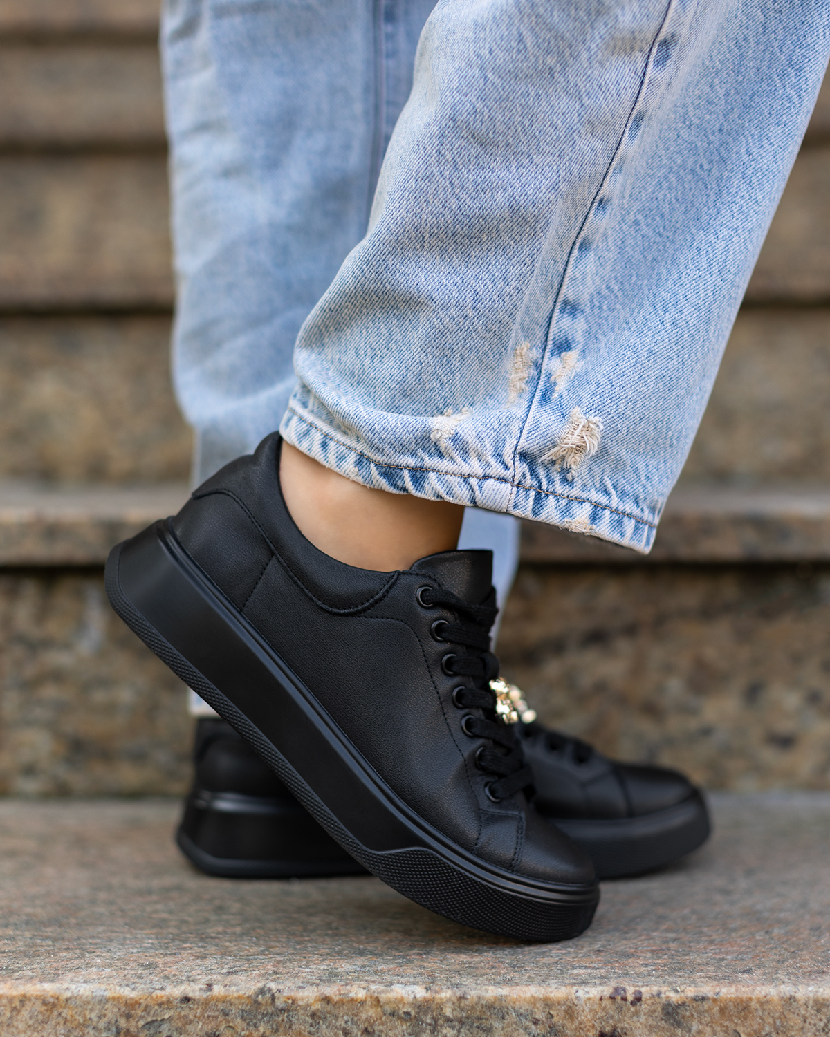 Czarne trampki damskie ze skóry licowej 005-59622-CZ-1Czarne trampki damskie ze skóry licowej 005-59622-CZ-1