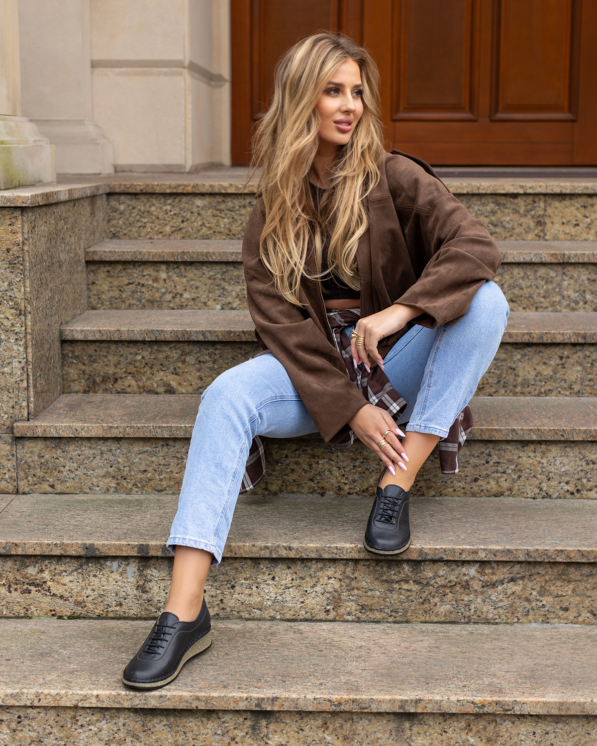Koturn o wysokości 3,5 cm optycznie wysmukla sylwetkę, zapewniając jednocześnie stabilność i wygodę chodzenia. Jasna podeszwa nie tylko stanowi modny akcent, ale także skutecznie izoluje od podłoża, zwiększając komfort użytkowania. Czarne półbuty na koturnie to uniwersalny wybór, który z powodzeniem dopełni zarówno klasyczne spodnie, jak i sukienki, oferując ponadczasową elegancję i wygodę na co dzień.