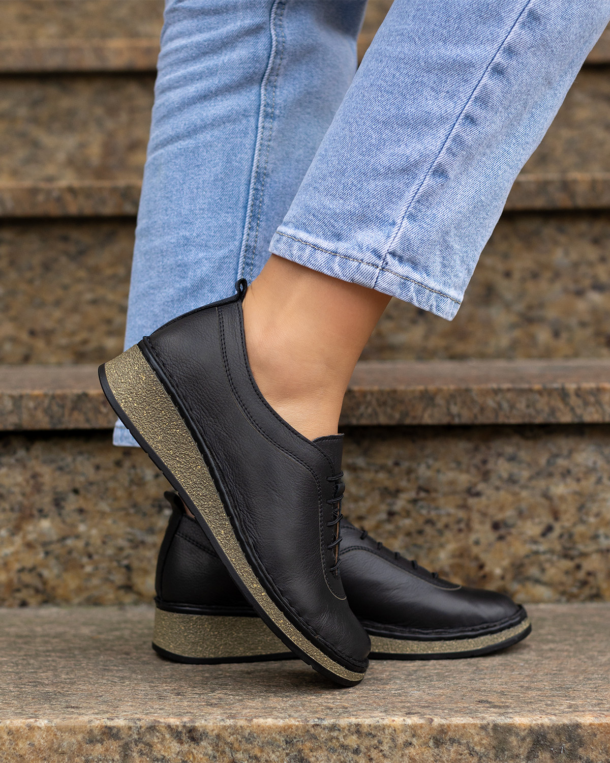 Czarne półbuty damskie ze skóry naturalnej na koturnie 148-21641-CZARNYCzarne półbuty damskie ze skóry naturalnej na koturnie 148-21641-CZARNY