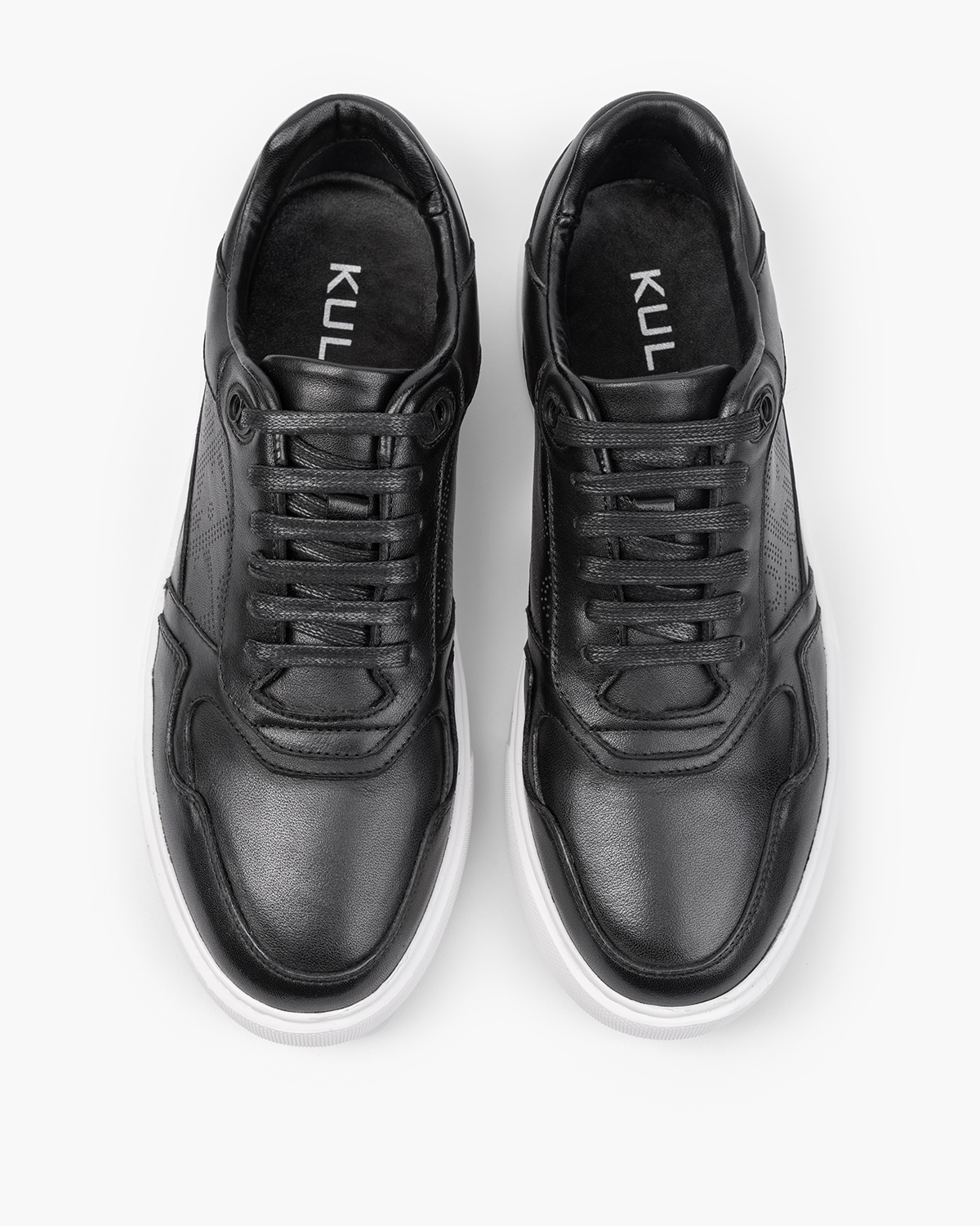 Czarne półbuty sportowe męskie ze skóry licowej na platformie