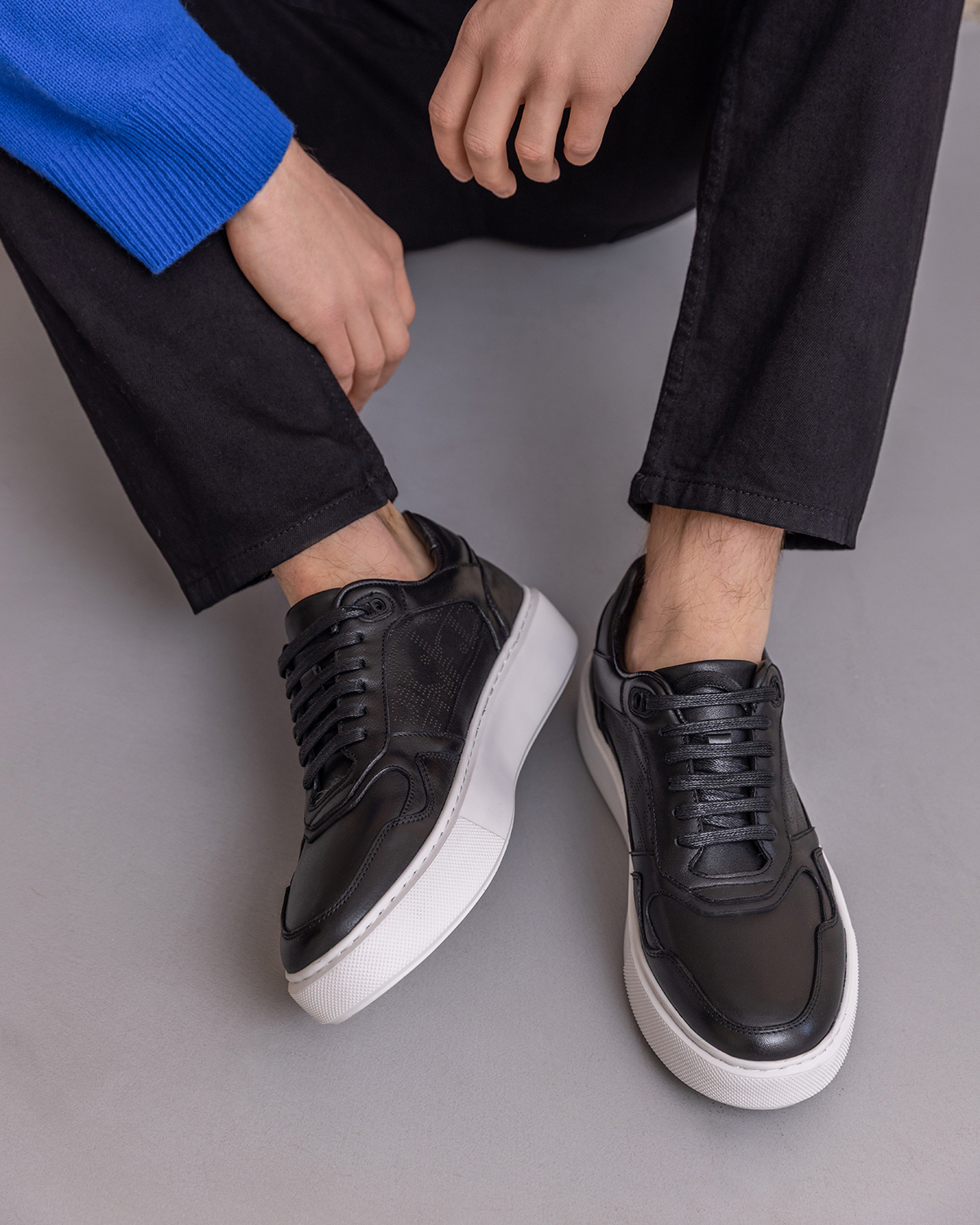 Czarne trampki męskie skórzane na platformie 151-3242-31-CZARCzarne trampki męskie skórzane na platformie 151-3242-31-CZAR