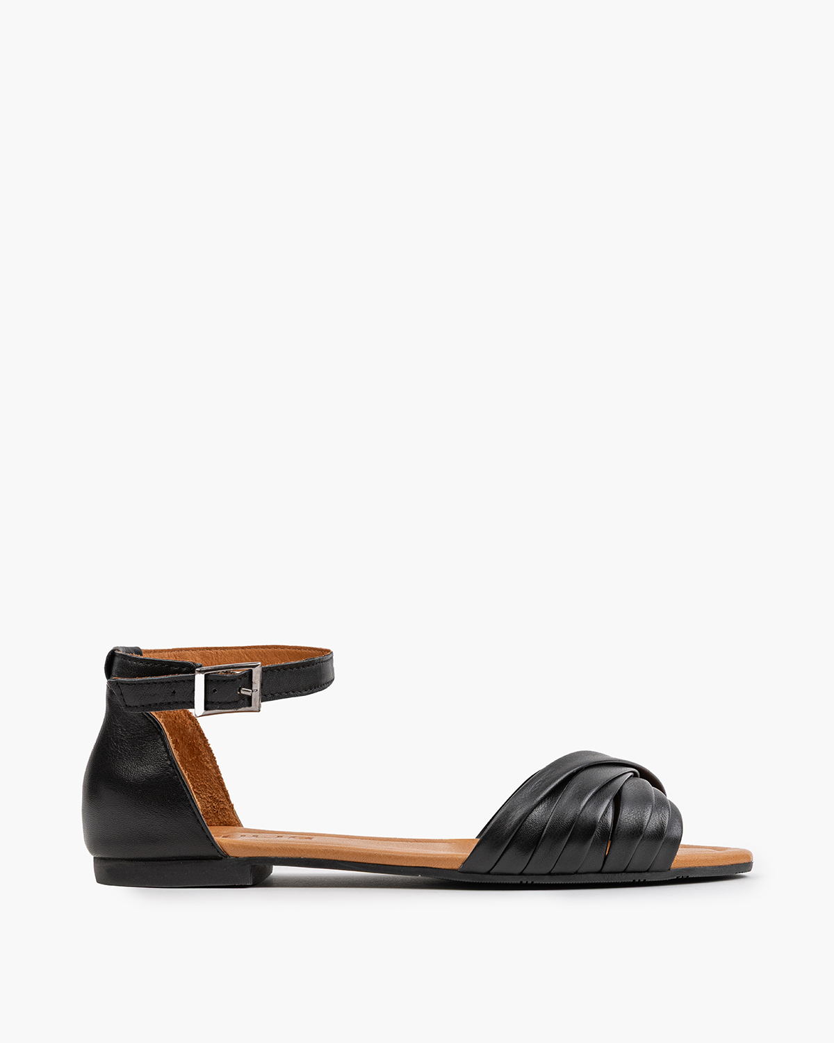 Czarne sandały damskie ze skóry licowej z plecionym przodem 145-5043-CZARNYCzarne sandały damskie ze skóry licowej z plecionym przodem 145-5043-CZARNY