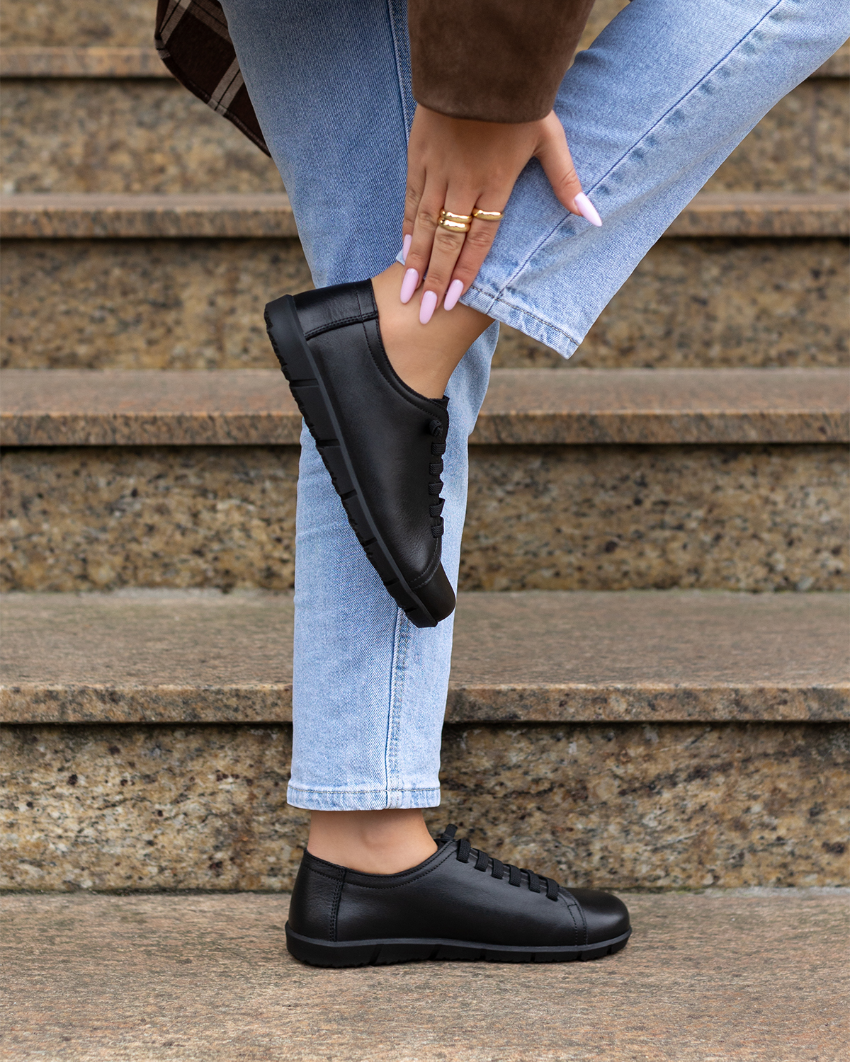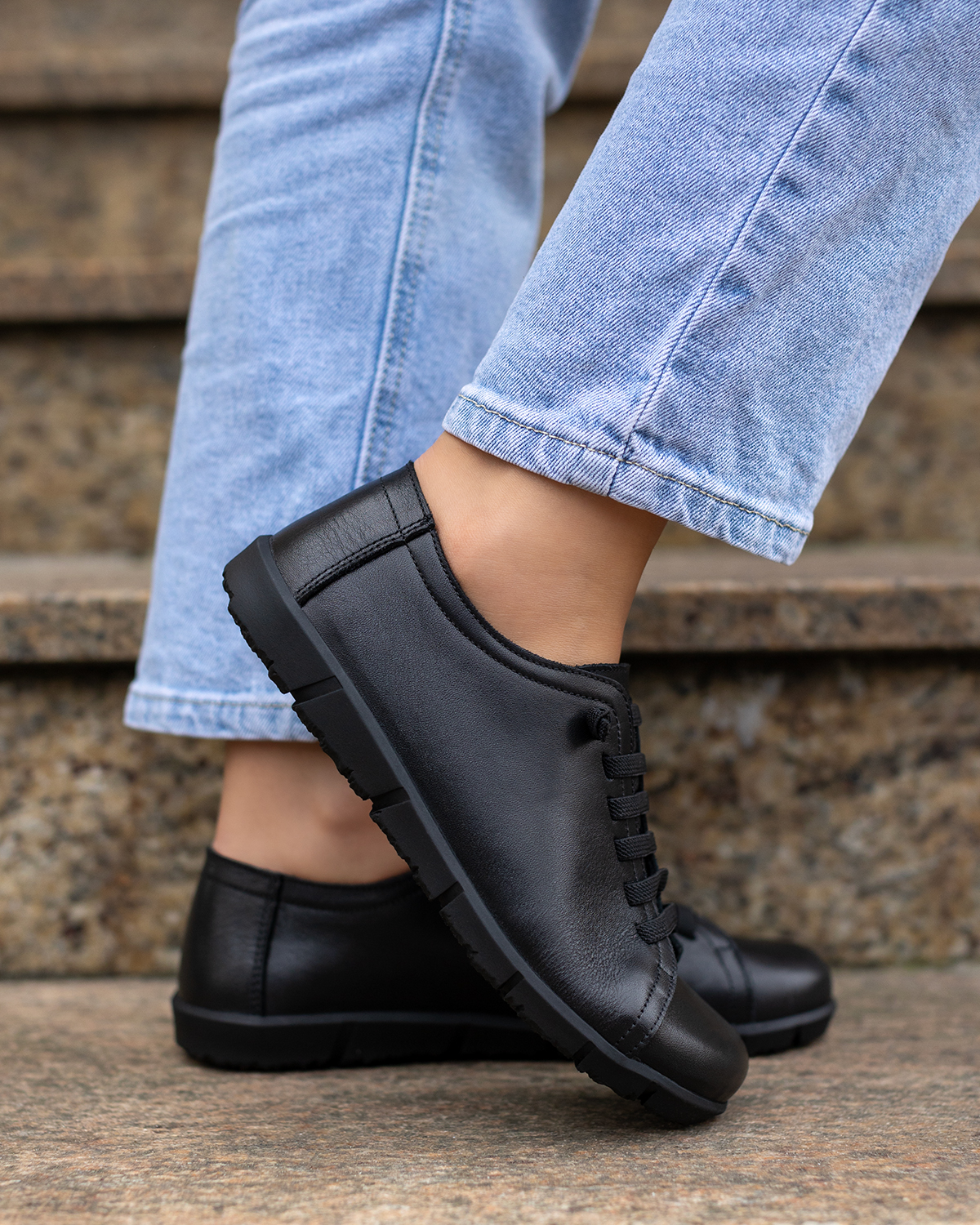 Czarne półbuty damskie ze skóry naturalnej na koturnie 148-21641-CZARNYCzarne półbuty damskie ze skóry naturalnej na koturnie 148-21641-CZARNY