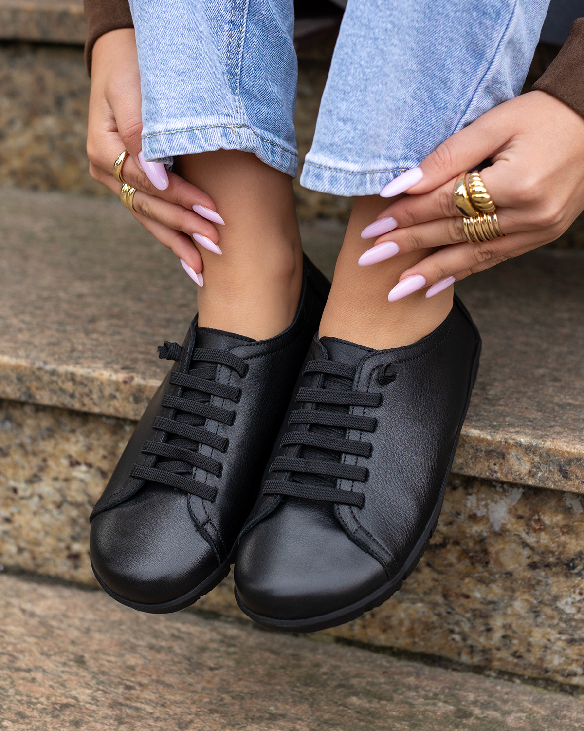 Czarne adidasy damskie sznurowane ze skóry naturalnej 148-52062-CZARNYCzarne adidasy damskie sznurowane ze skóry naturalnej 148-52062-CZARNY