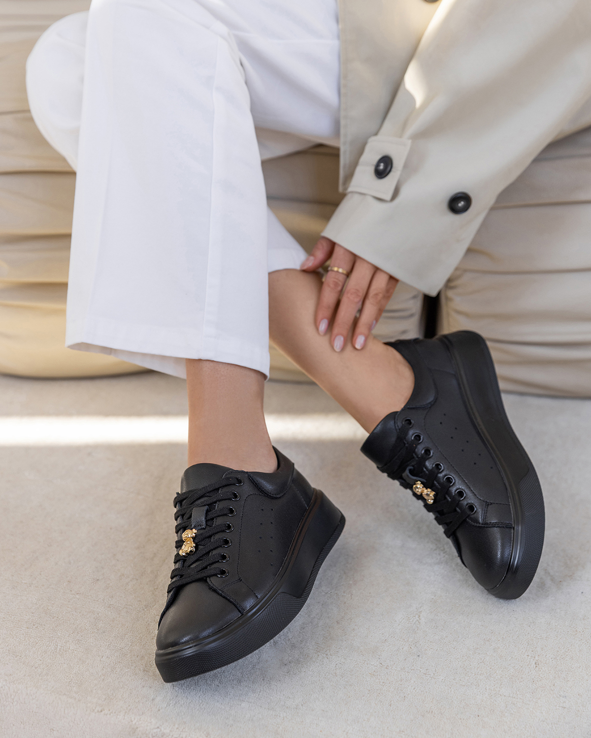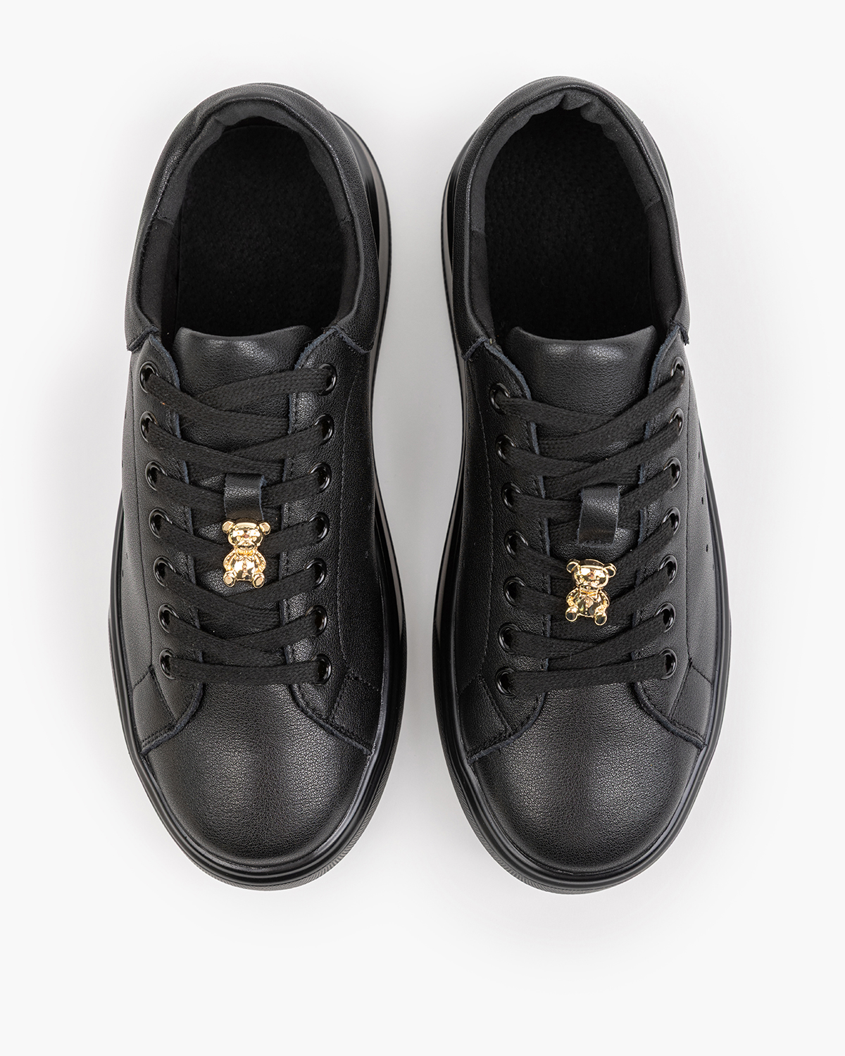 Czarne trampki damskie ze skóry licowej 005-59622-CZ-1Czarne trampki damskie ze skóry licowej 005-59622-CZ-1