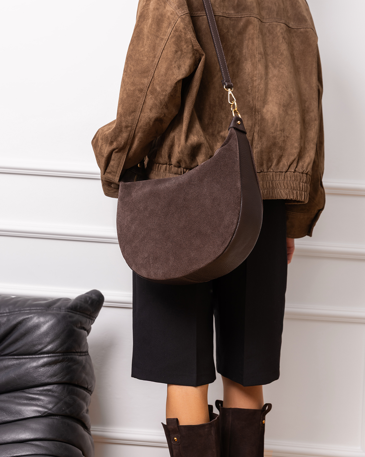 Czekoladowa mała torebka hobo zamszowa z klamrą 154-6156-CZEKOLADACzekoladowa mała torebka hobo zamszowa z klamrą 154-6156-CZEKOLADA