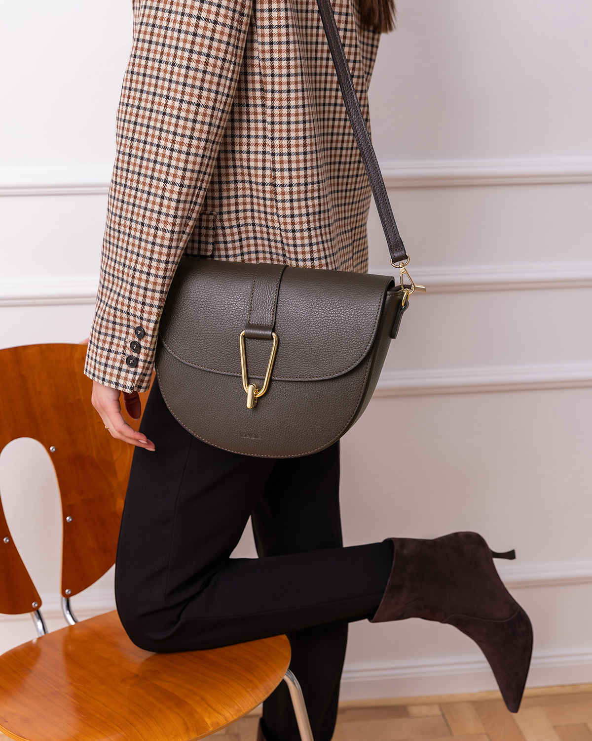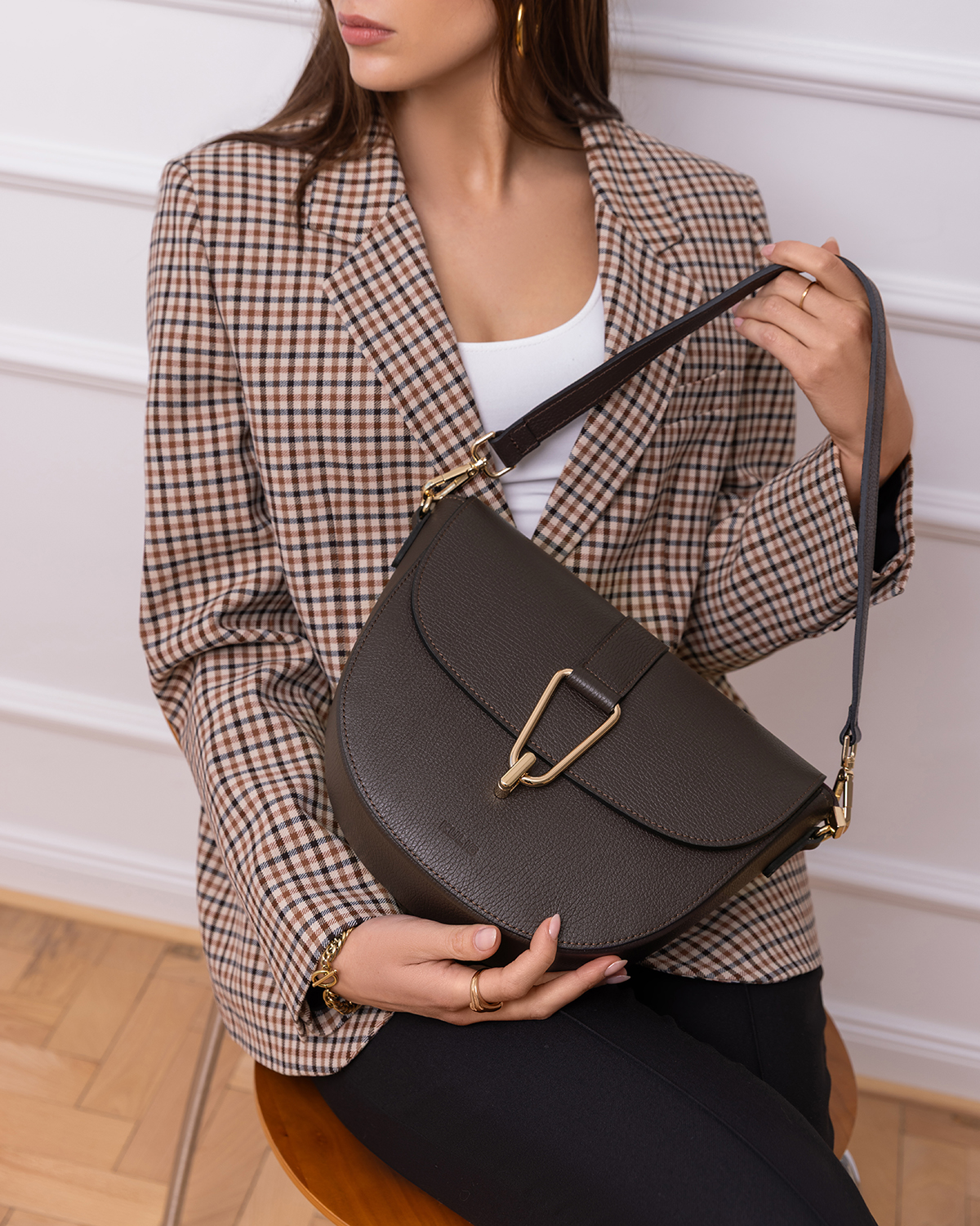 Czekoladowa torebka damska ze skóry licowej z klamrą